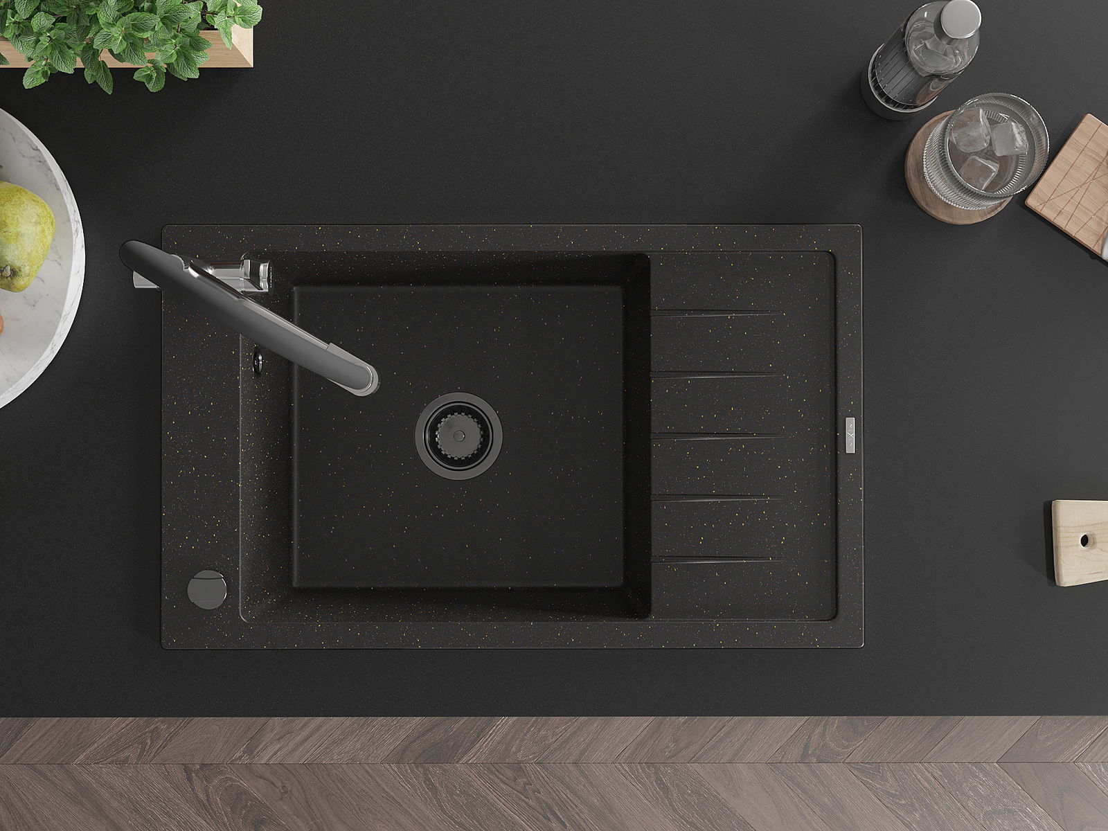 Mexen Elias νεροχύτης γρανίτης 1-θαλάμου με στραγγιστήρι και μπαταρία