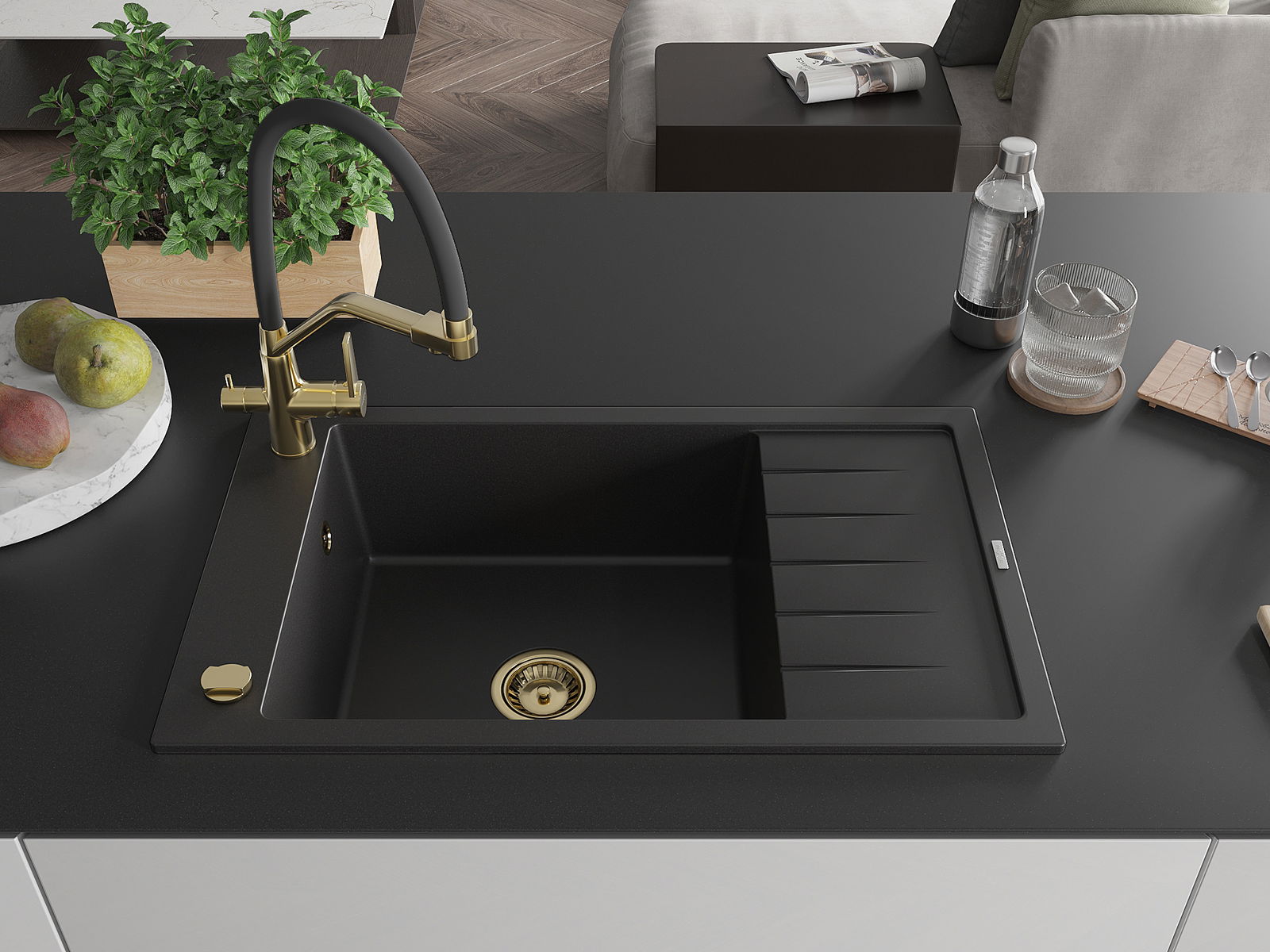 Mexen Elias νεροχύτης γρανίτης μονόχωρος με αποστραγγιστήρα και μπαταρία