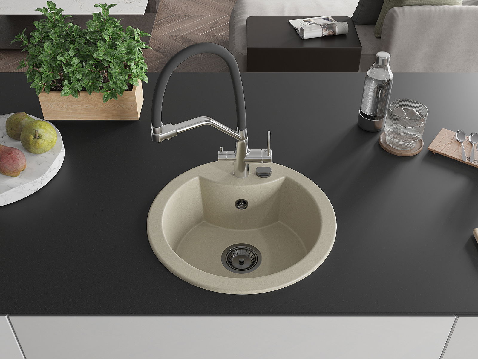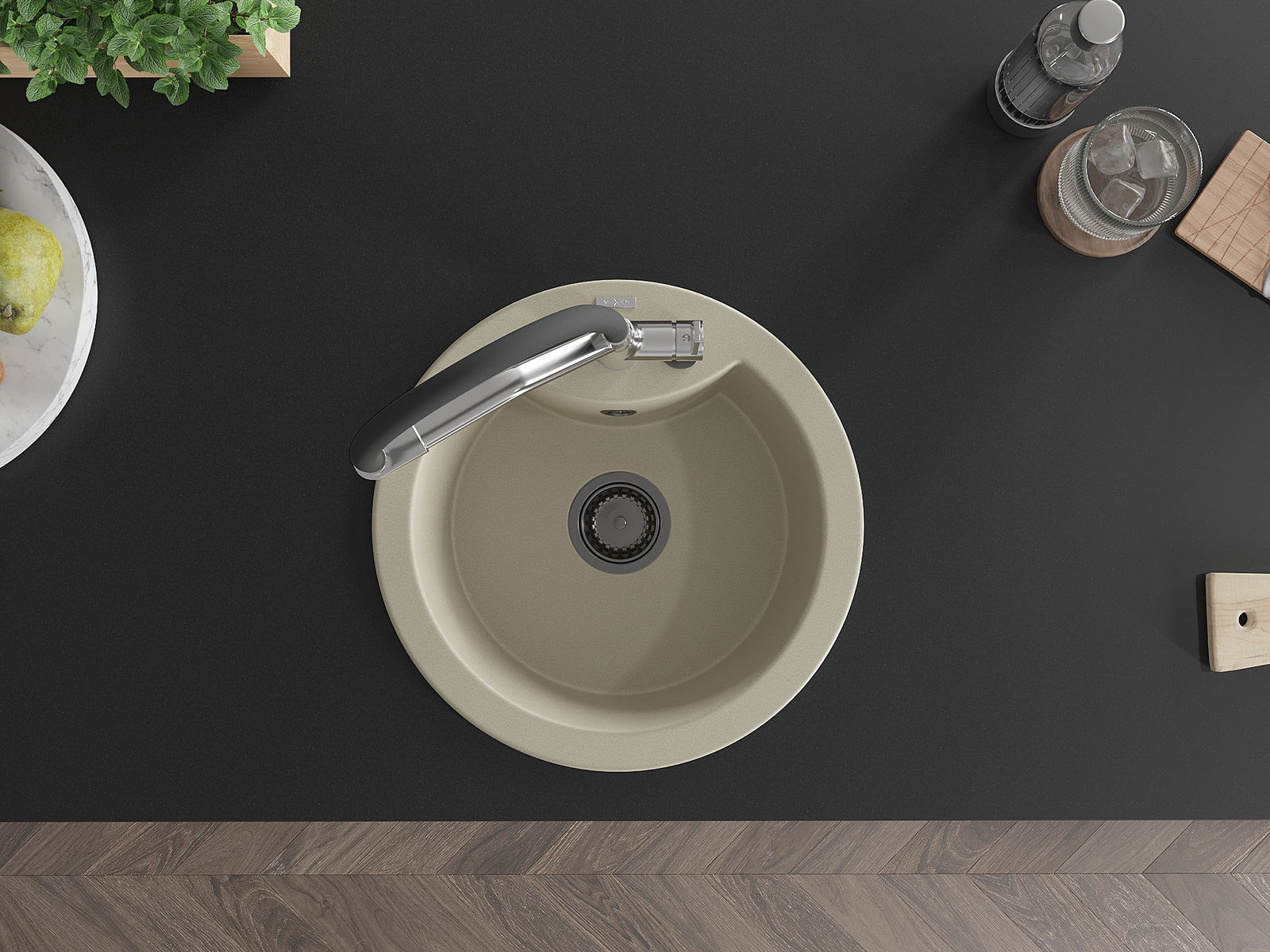 Ο νεροχύτης κατασκευάστηκε από υψηλής ποιότητας γρανίτη. Αποτελεί μια κομψή, και κυρίως πρακτική προσθήκη για κάθε κουζίνα, ανεξάρτητα από το στυλ της. Η υψηλή ποιότητα και η αντοχή του γρανίτη εξασφαλίζουν πολυετή χρήση.