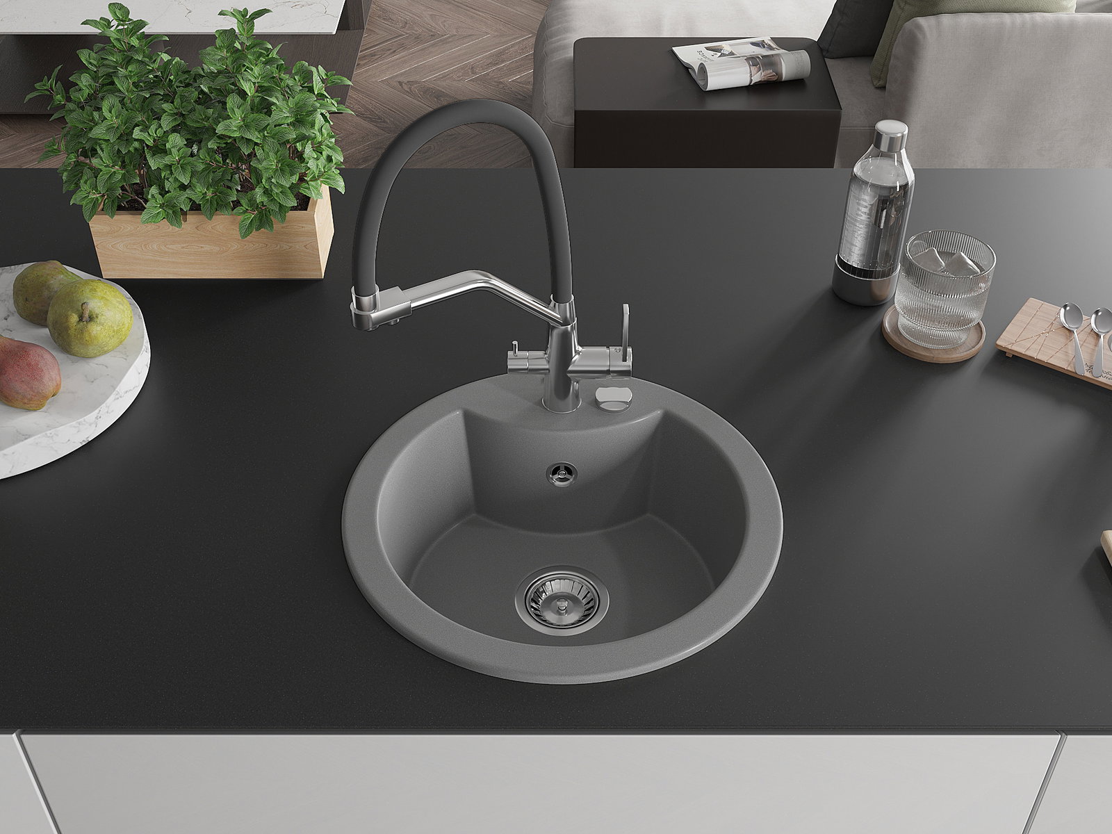 Ο νεροχύτης κατασκευάστηκε από υψηλής ποιότητας γρανίτη. Αποτελεί μια κομψή, και κυρίως πρακτική προσθήκη για κάθε κουζίνα, ανεξάρτητα από το στυλ της. Η υψηλή ποιότητα και η αντοχή του γρανίτη εξασφαλίζουν πολυετή χρήση.