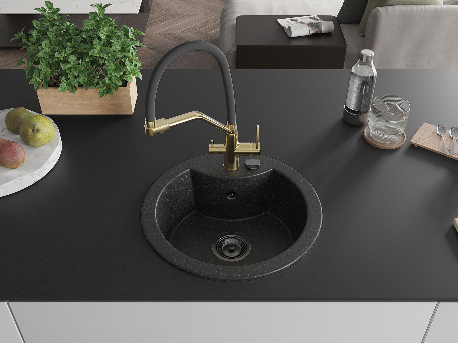 Ο νεροχύτης κατασκευάστηκε από υψηλής ποιότητας γρανίτη. Αποτελεί μια κομψή, και κυρίως πρακτική προσθήκη για κάθε κουζίνα, ανεξάρτητα από το στυλ της. Η υψηλή ποιότητα και η αντοχή του γρανίτη εξασφαλίζουν πολυετή χρήση.