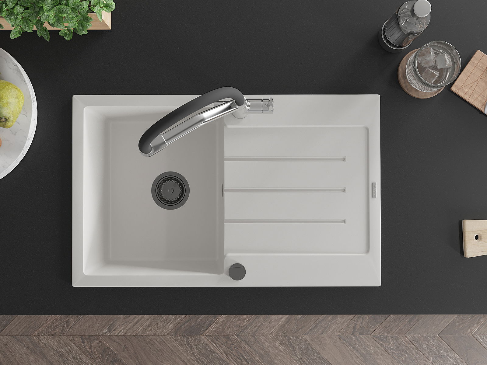 Ο νεροχύτης κατασκευάστηκε από υψηλής ποιότητας γρανίτη. Αποτελεί μια κομψή, και κυρίως πρακτική προσθήκη για κάθε κουζίνα, ανεξάρτητα από το στυλ της. Η υψηλή ποιότητα και η αντοχή του γρανίτη εξασφαλίζουν πολυετή χρήση.