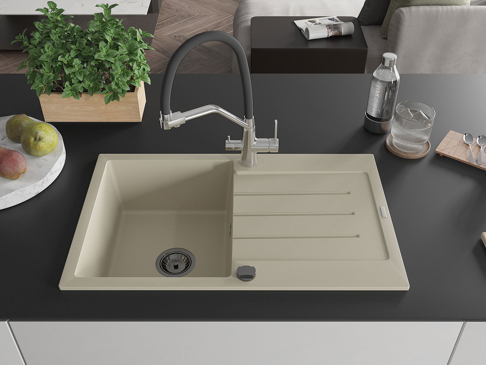 Ο νεροχύτης κατασκευάστηκε από υψηλής ποιότητας γρανίτη. Αποτελεί μια κομψή, και κυρίως πρακτική προσθήκη για κάθε κουζίνα, ανεξάρτητα από το στυλ της. Η υψηλή ποιότητα και η αντοχή του γρανίτη εξασφαλίζουν πολυετή χρήση.