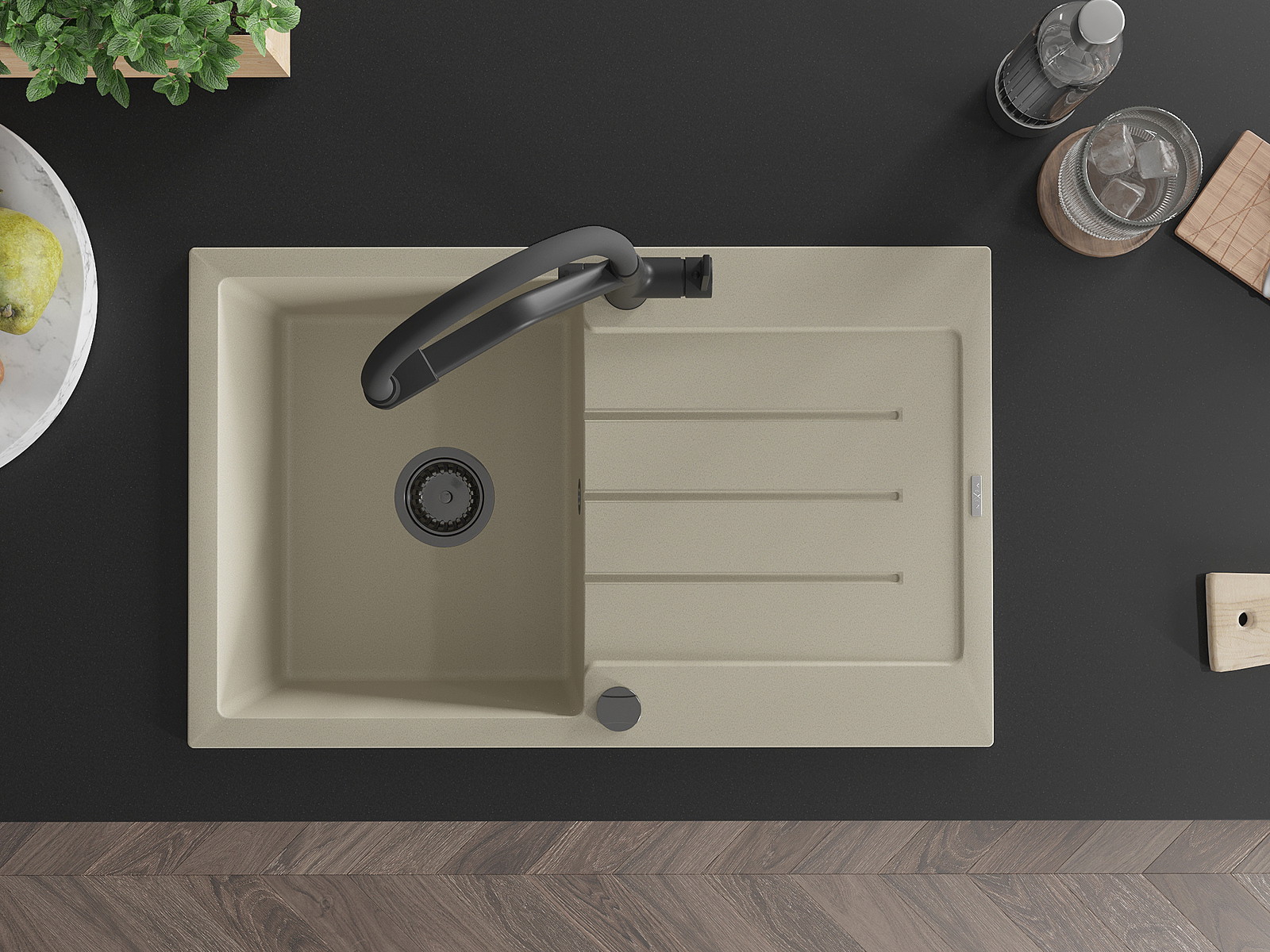Mexen Bruno νεροχύτης γρανίτης 1-θάλαμος με στραγγιστήριο και μπαταρία