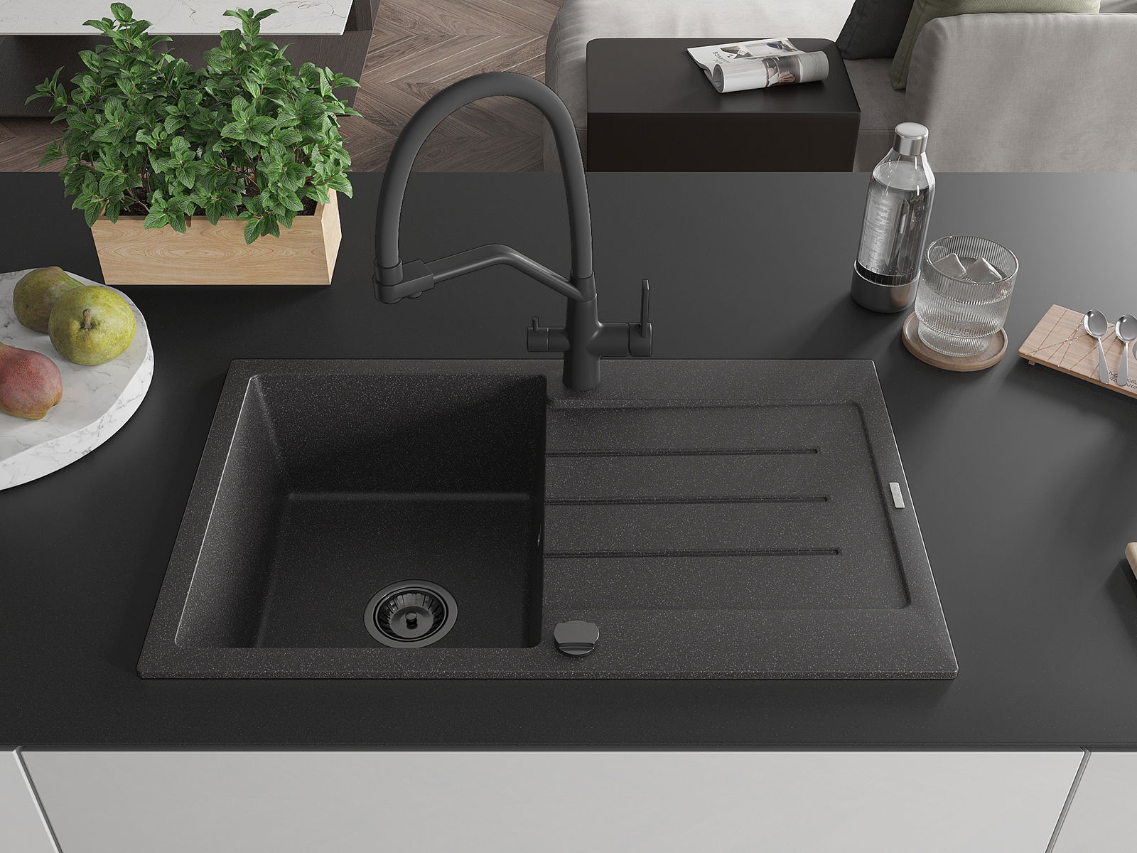 Mexen Bruno νεροχύτης γρανίτης 1-χωρίς θάλαμο με στραγγιστήρι και μπαταρία