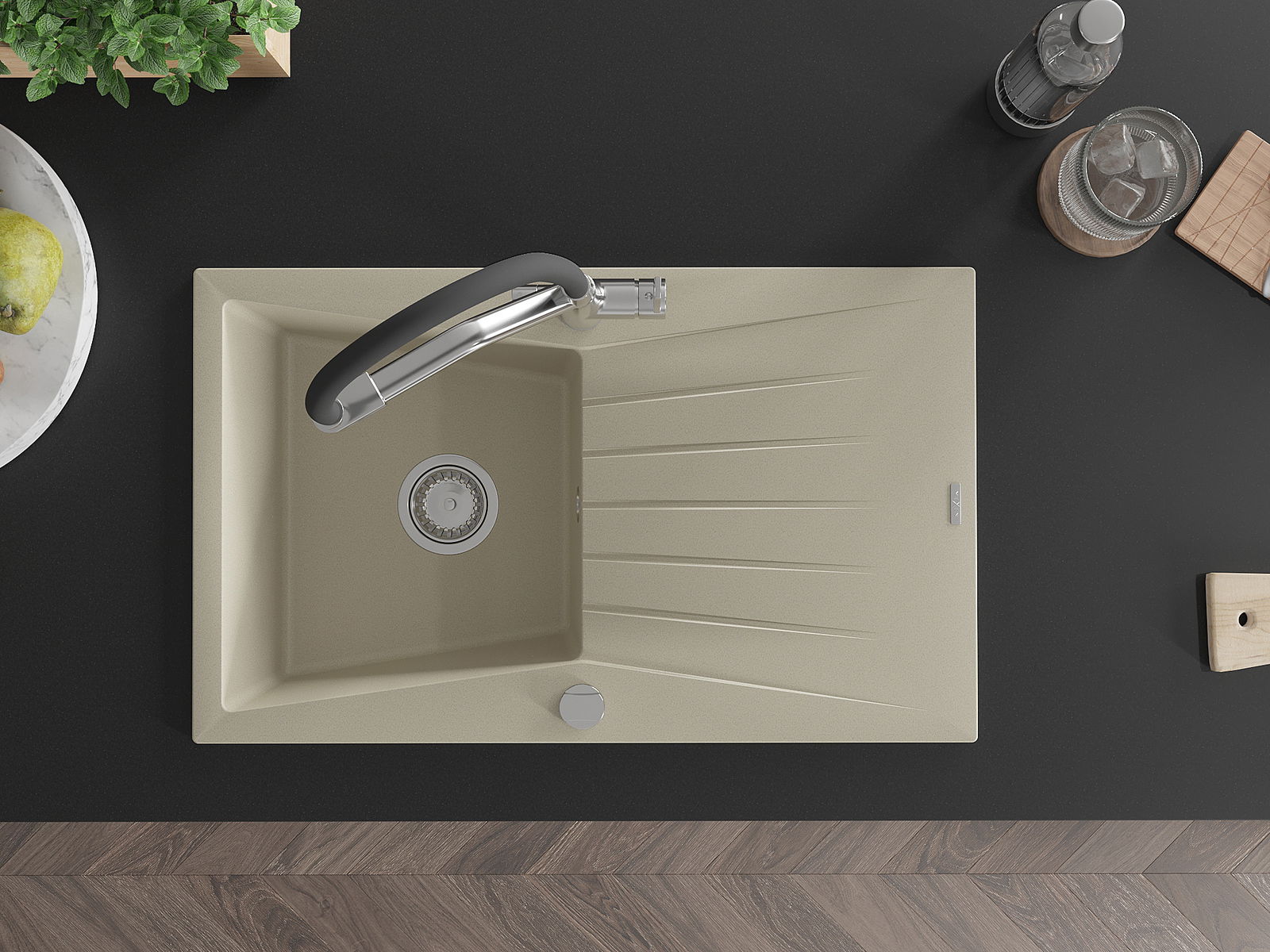 Ο νεροχύτης κατασκευάστηκε από υψηλής ποιότητας γρανίτη. Αποτελεί μια κομψή, και κυρίως πρακτική προσθήκη για κάθε κουζίνα, ανεξάρτητα από το στυλ της. Η υψηλή ποιότητα και η αντοχή του γρανίτη εξασφαλίζουν πολυετή χρήση.