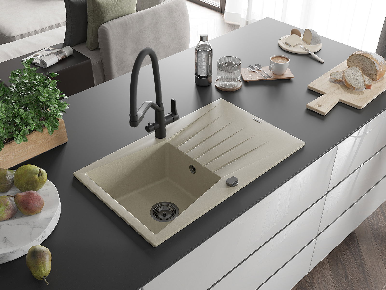 Η επιφάνεια του νεροχύτη είναι ανθεκτική σε λεκέδες και αποχρωματισμούς, καθιστώντας τη εύκολη στη συντήρηση καθαριότητας και διατηρεί το χρώμα της για μεγάλο χρονικό διάστημα χρήσης. Αισθητική και πρακτική συμπλήρωση κάθε κουζίνας.