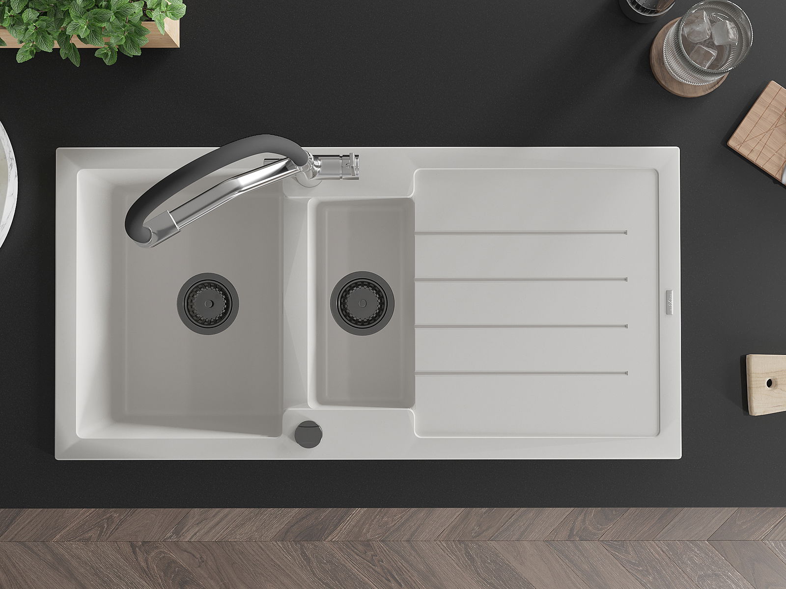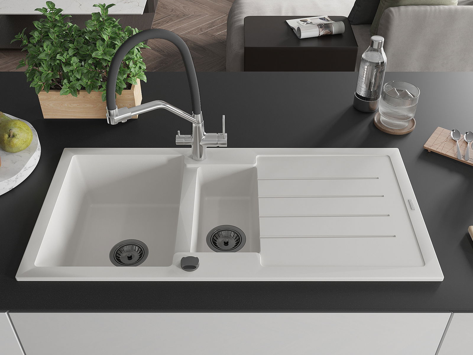 Η επιλογή ενός νεροχύτη με στραγγιστήρι είναι μια πρακτική λύση που επιτρέπει να τοποθετήσετε τα πλυμένα πιάτα ή τα λαχανικά και τα φρούτα. Το στραγγιστήρι διευκολύνει το καθημερινό μαγείρεμα και βοηθά στη διατήρηση της τάξης στην κουζίνα.