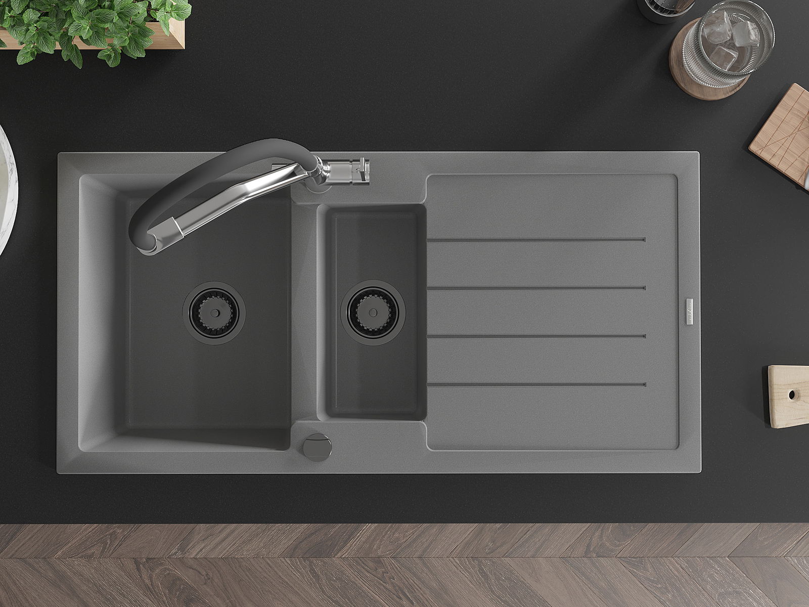 Mexen Andres νεροχύτης γρανίτης 1,5 κοιλοτήτων με στραγγιστήρι και μπαταρία