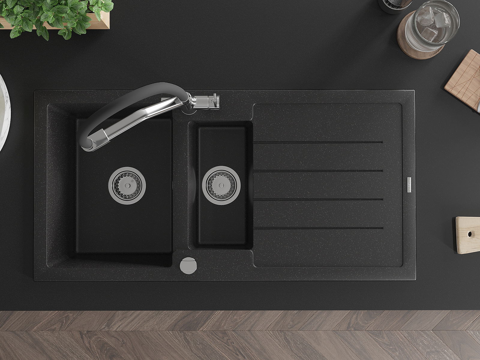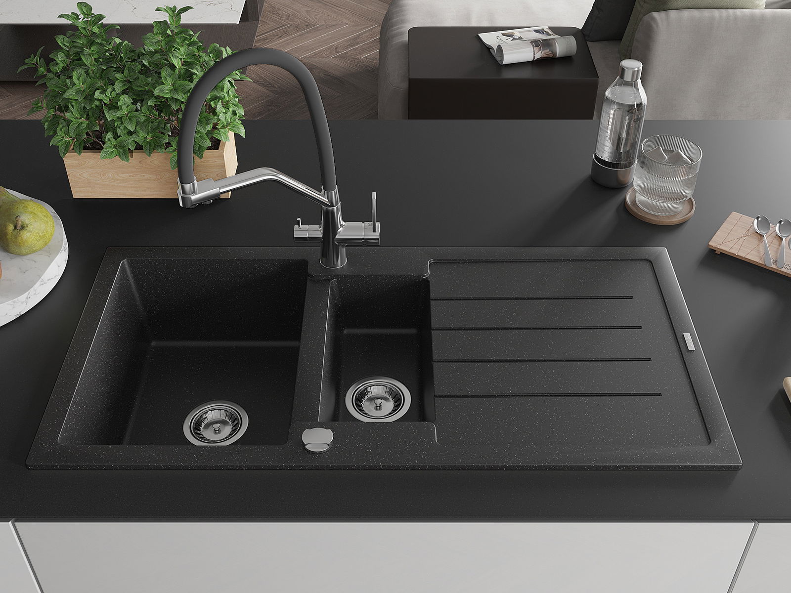 Mexen Andres νεροχύτης γρανίτη 1,5-θαλάμων με στραγγιστήρα και μπαταρία