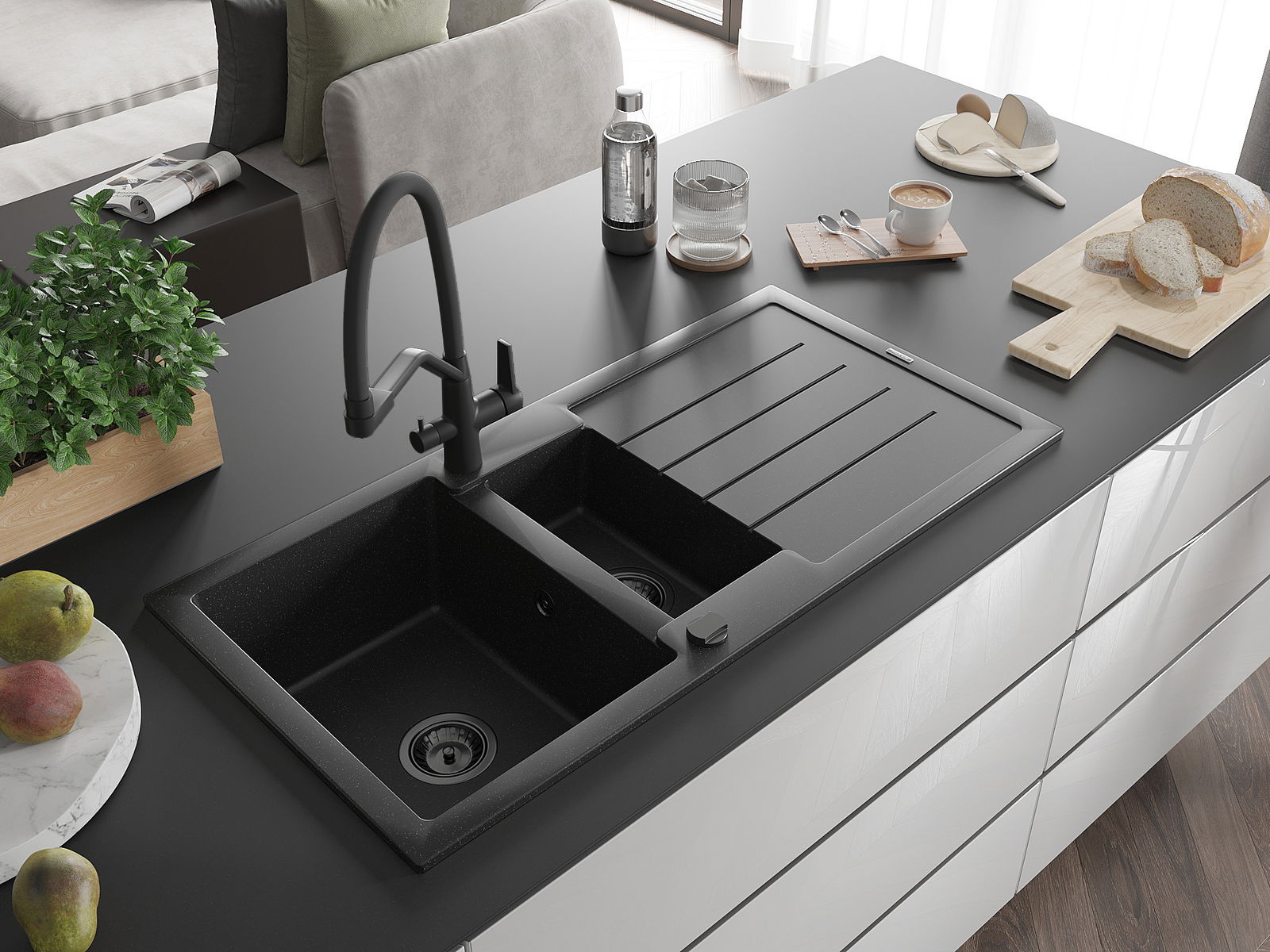 Mexen Andres γκρανιτένιος νεροχύτης 1,5 θαλάμων με στραγγιστήριο και