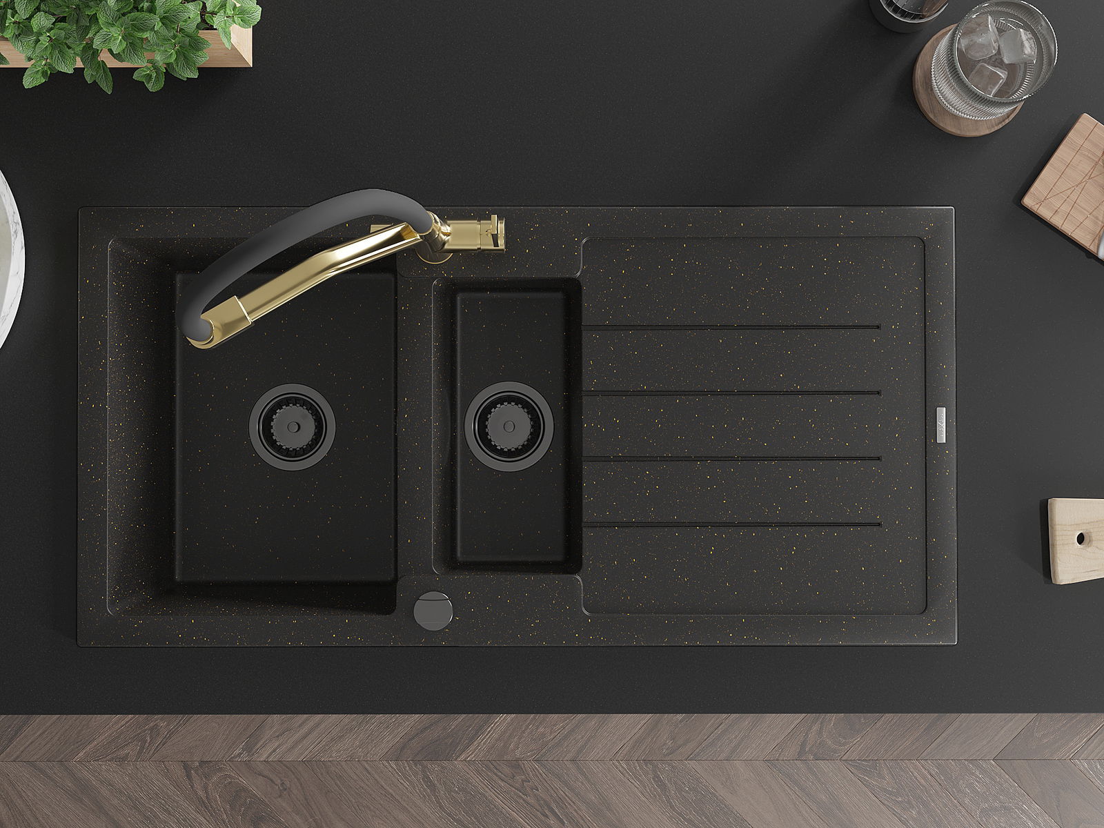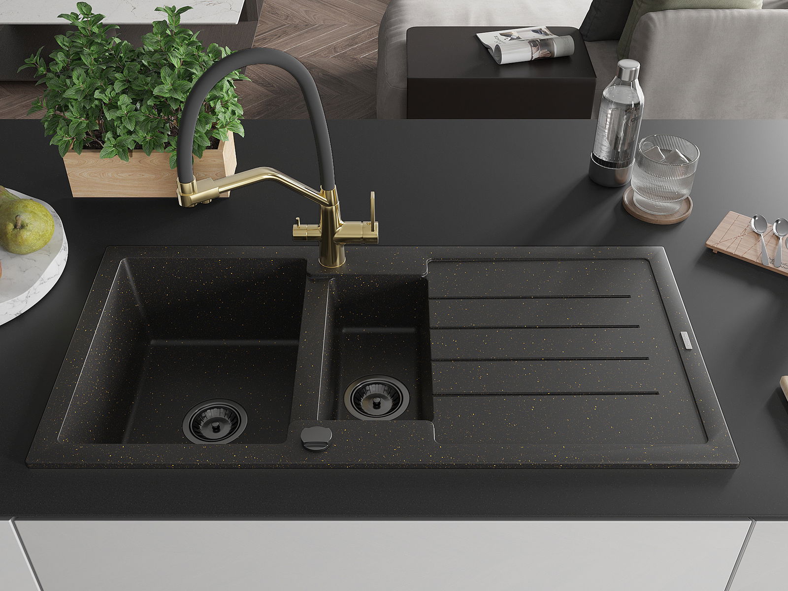 Mexen Andres νεροχύτης γρανίτης 1,5 θάλαμος με αποστραγγιστήρα και μπαταρία