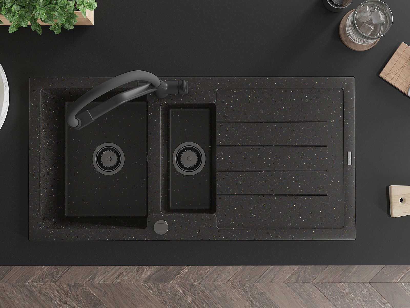 Mexen Andres νεροχύτης γρανίτης 1,5 θαλάμων με στραγγιστήρα και κουζινική