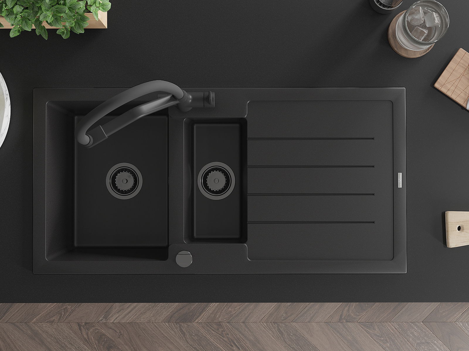 Mexen Andres νεροχύτης γρανίτης 1,5-θαλάμων με στραγγιστήρα και μπαταρία