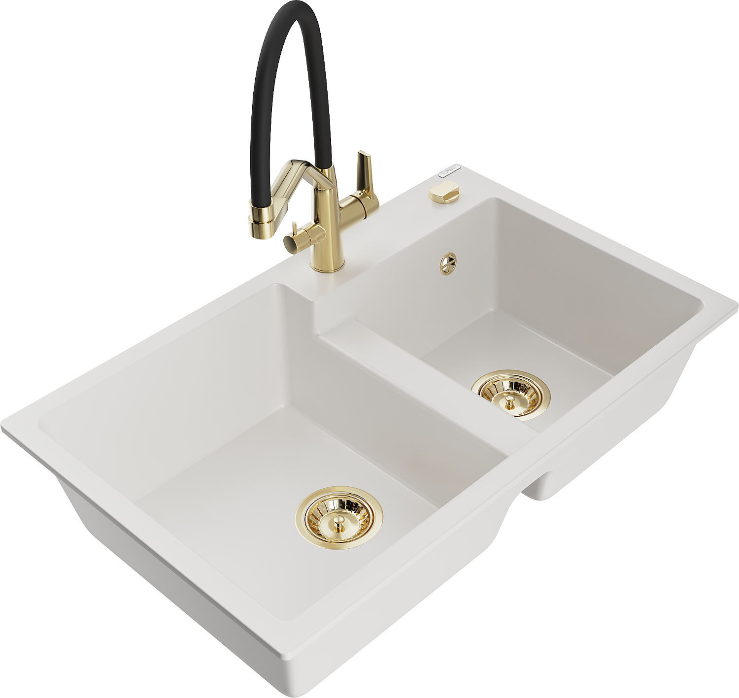 Mexen Tomas νεροχύτης γρανιτένιος 2-θαλάμων με κουζίνα-μπαταρία Duo, λευκός