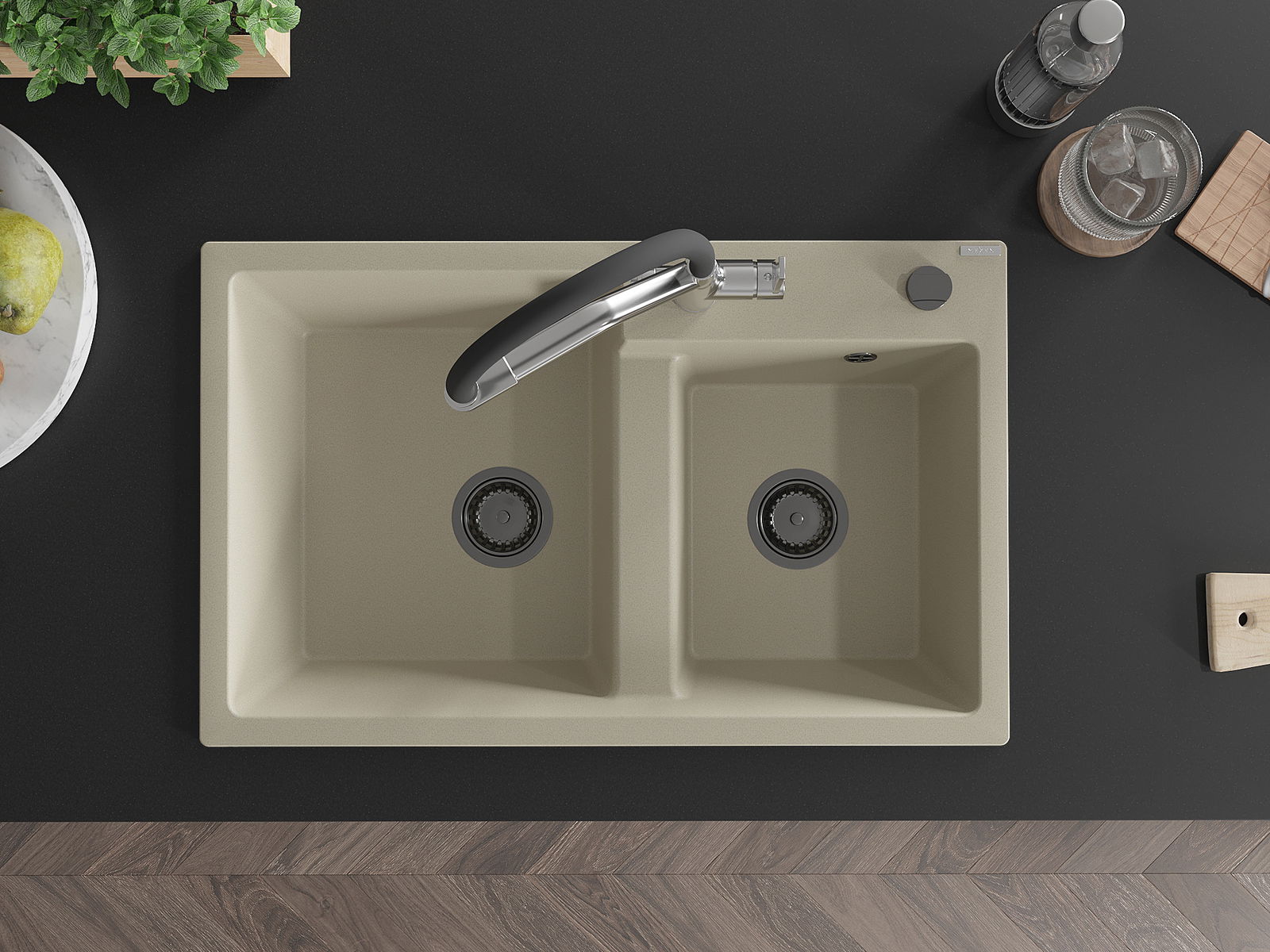 Mexen Tomas νεροχύτης γρανίτης 2-θάλαμος με βρύση κουζίνας Duo, μπεζ