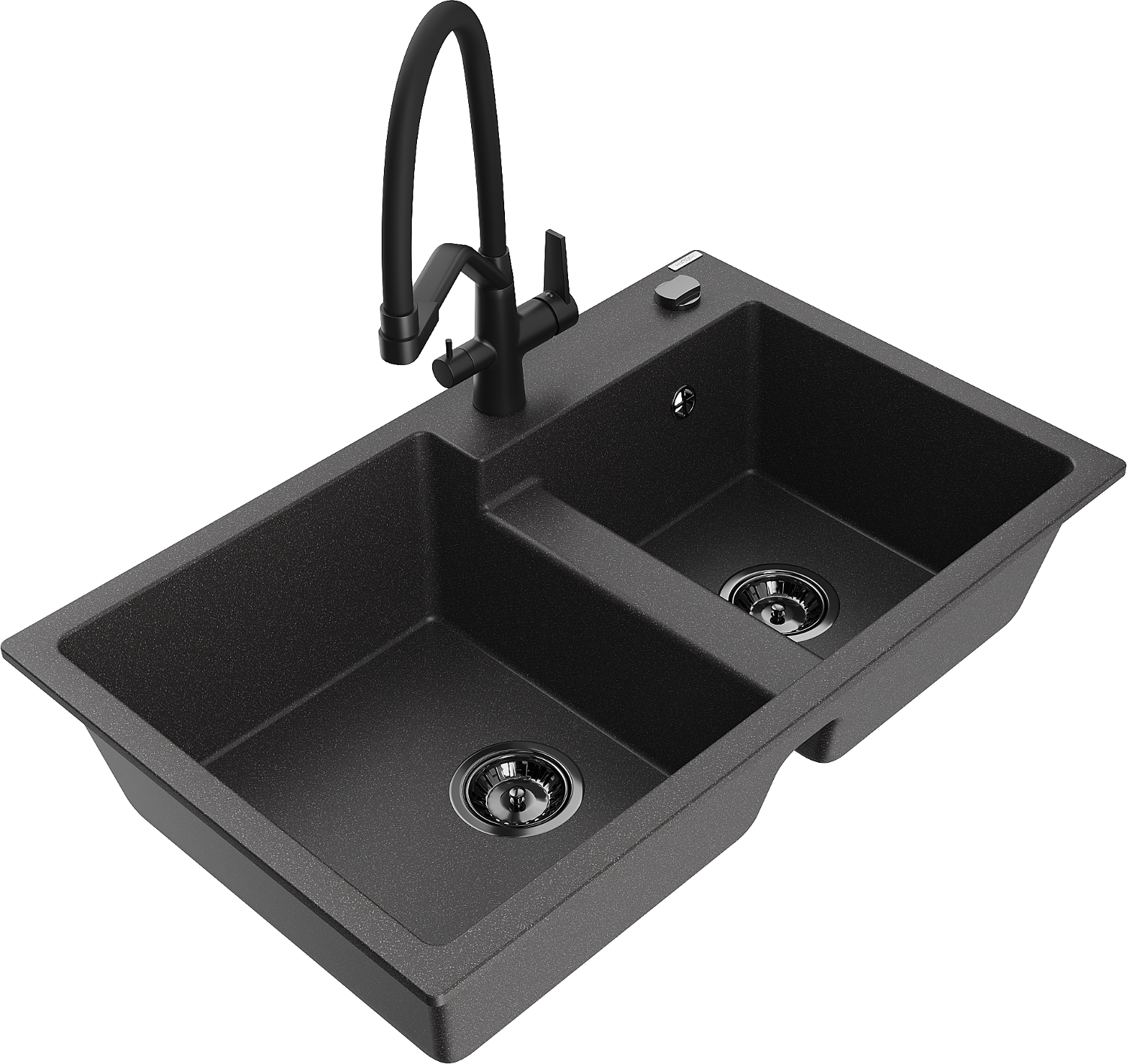 Mexen Tomas νεροχύτης γρανίτης δύο θαλάμων με μπαταρία κουζίνας Duo, μαύρος