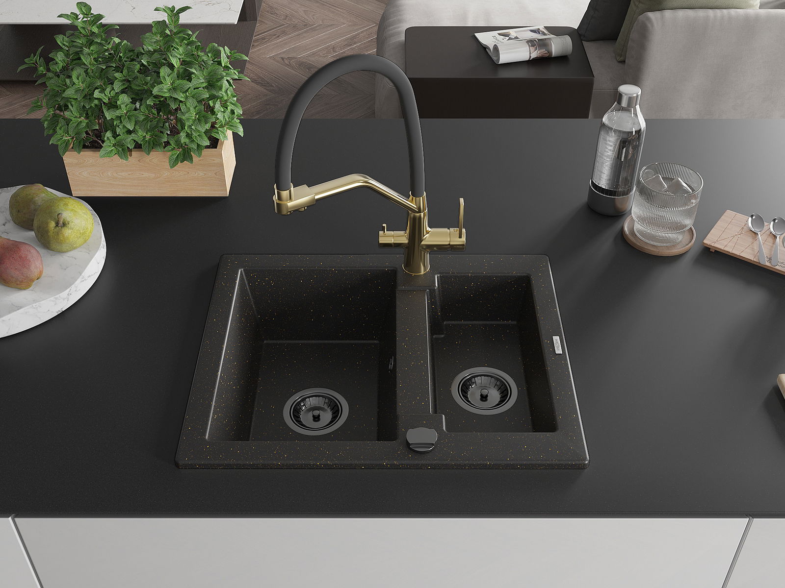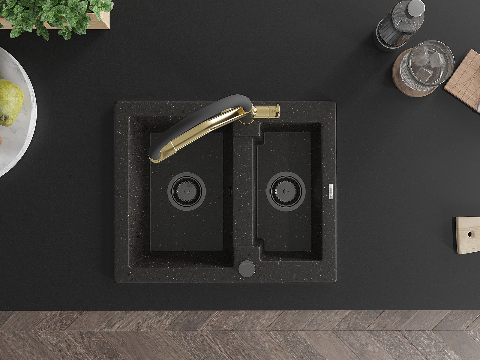 Mexen Carlos νεροχύτης γρανίτης 1,5-θαλάμων με μπαταρία κουζίνας Duo,