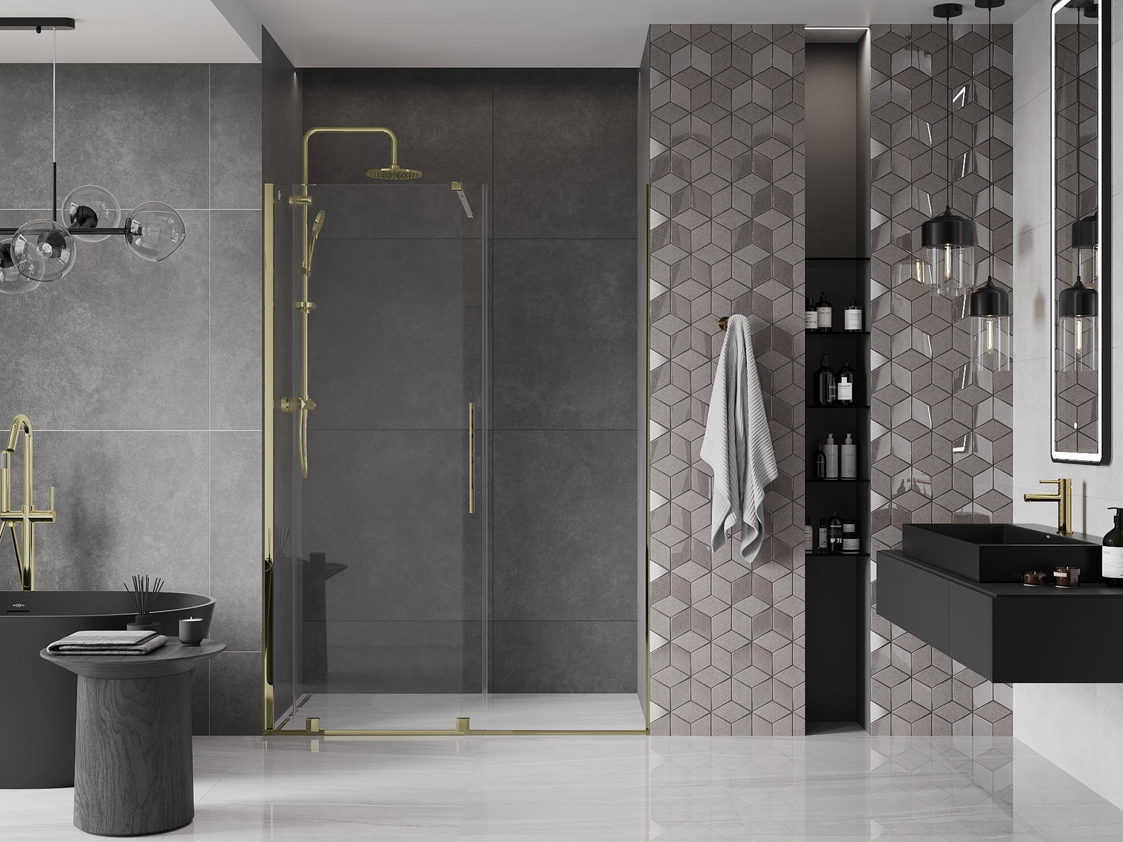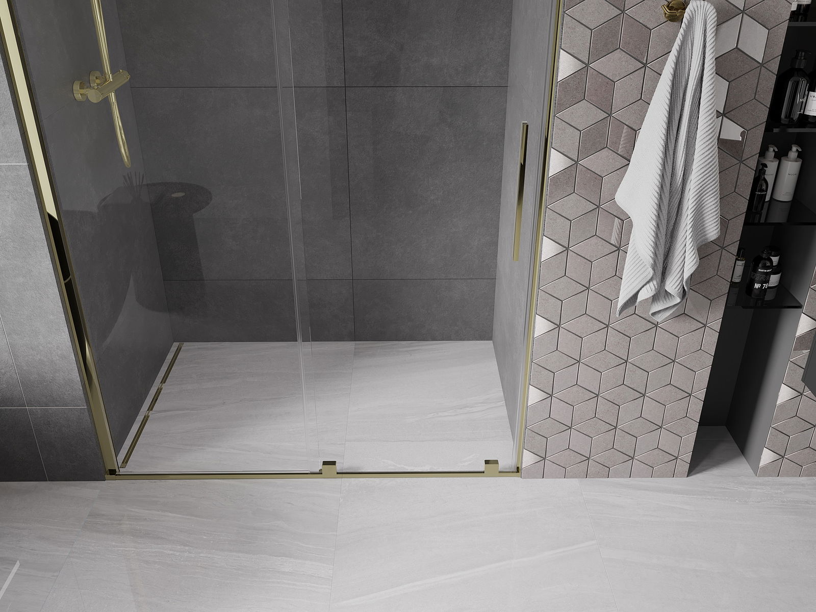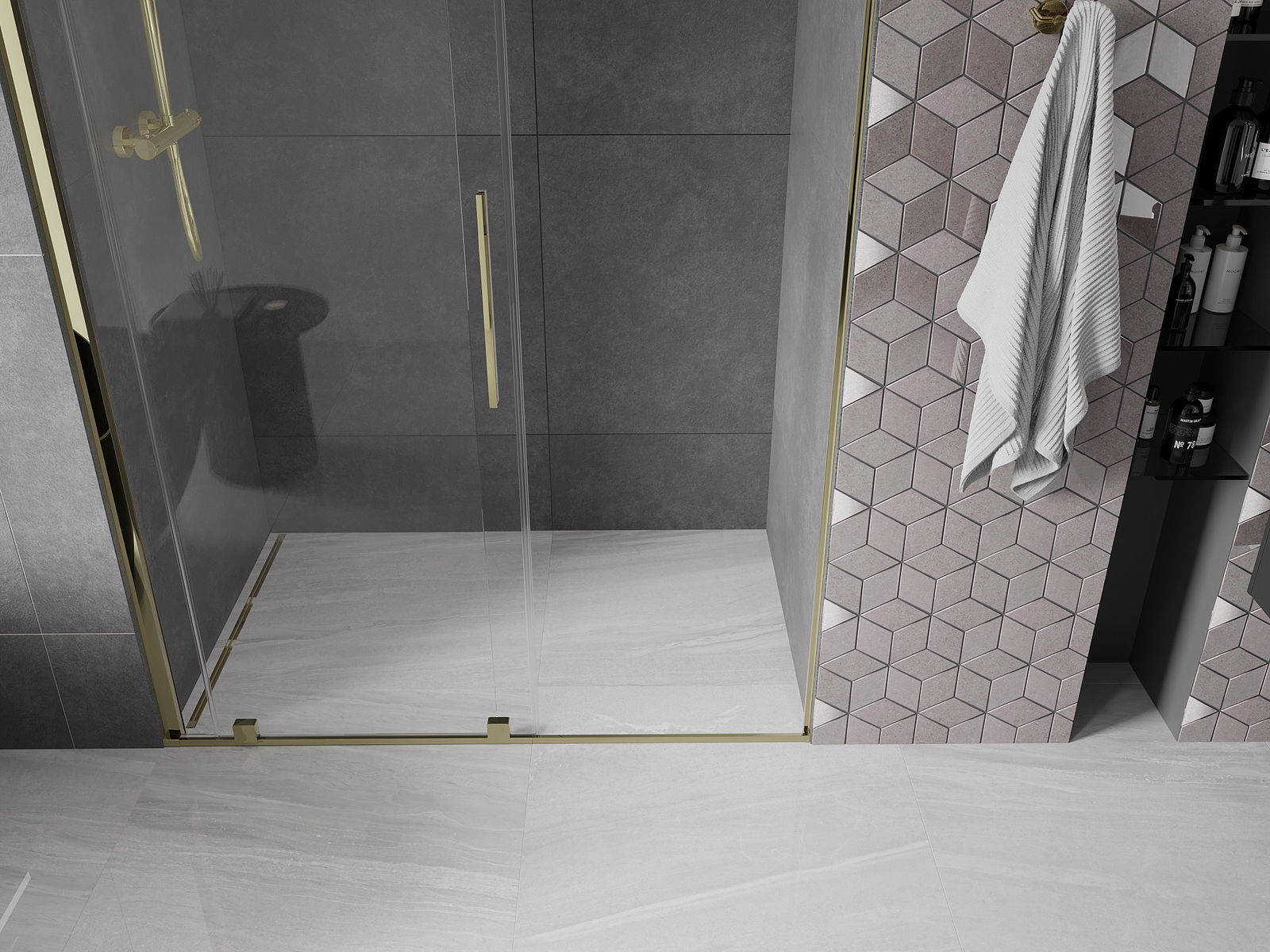 Η πρακτική και άνετη λαβή είναι κατασκευασμένη από ανοξείδωτο ατσάλι. Ο μοντέρνος σχεδιασμός σε συνδυασμό με το φινίρισμα που ταιριάζει με το χρώμα των προφίλ προσδίδει συνολικά μια σύγχρονη και στυλάτη εμφάνιση, υπογραμμίζοντας την αισθητική κάθε μπάνιου.