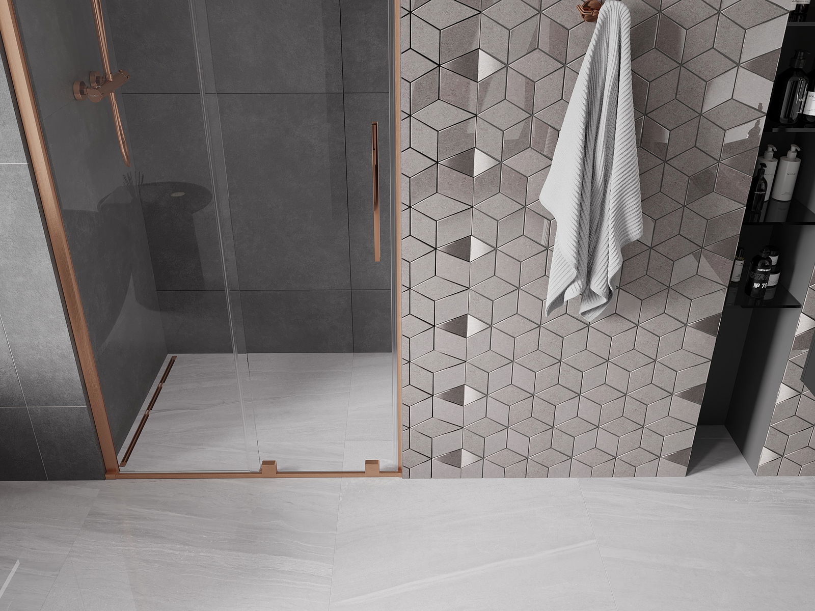 Mexen Velar συρόμενη πόρτα ντους 100 εκ., διάφανη, βουρτσισμένο χαλκό