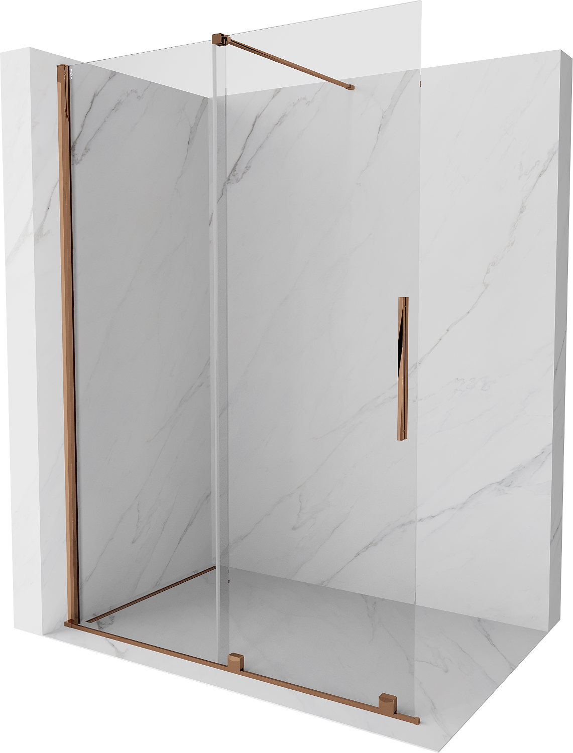 Mexen Velar συρόμενη καμπίνα ντους Walk-in 160 x 200 cm, διάφανη 8 mm, ροζ χρυσό