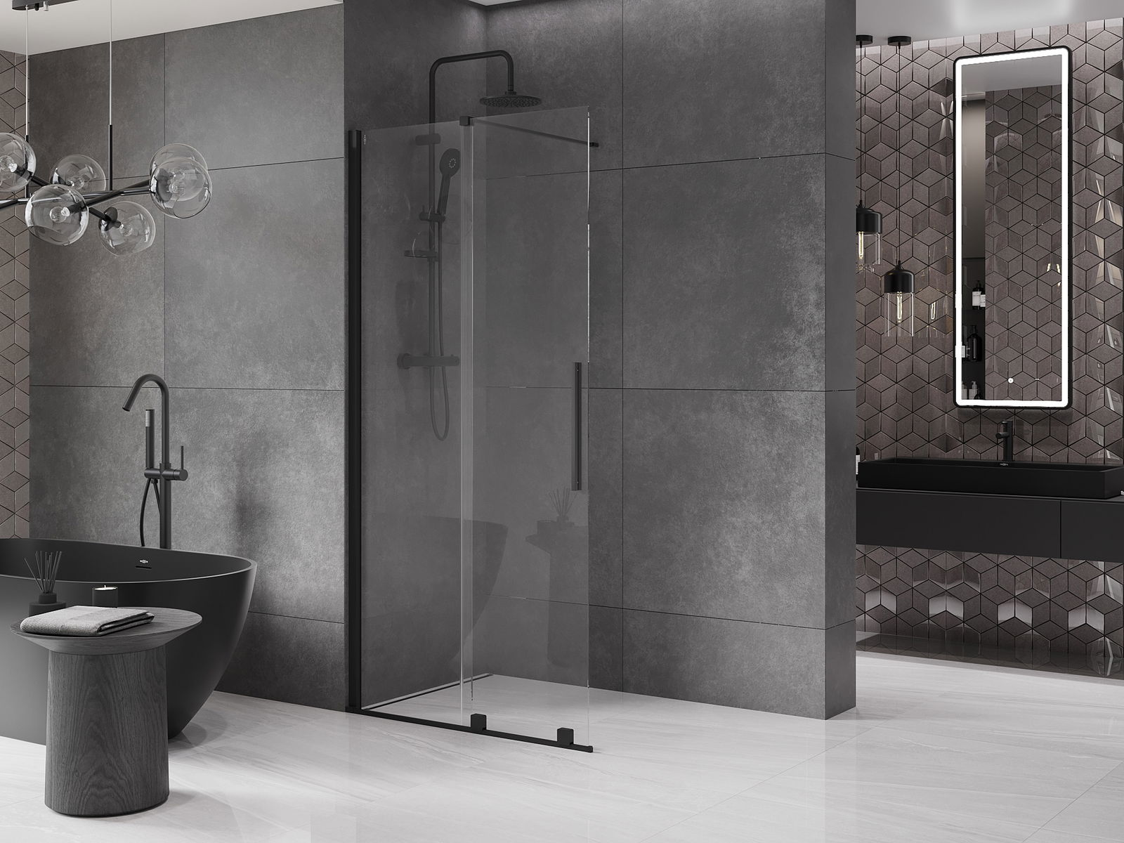 Mexen Velar Συρόμενη καμπίνα ντους Walk-in 110 x 200 cm, διάφανη 8 mm, μαύρη - 871-110-000-03-70