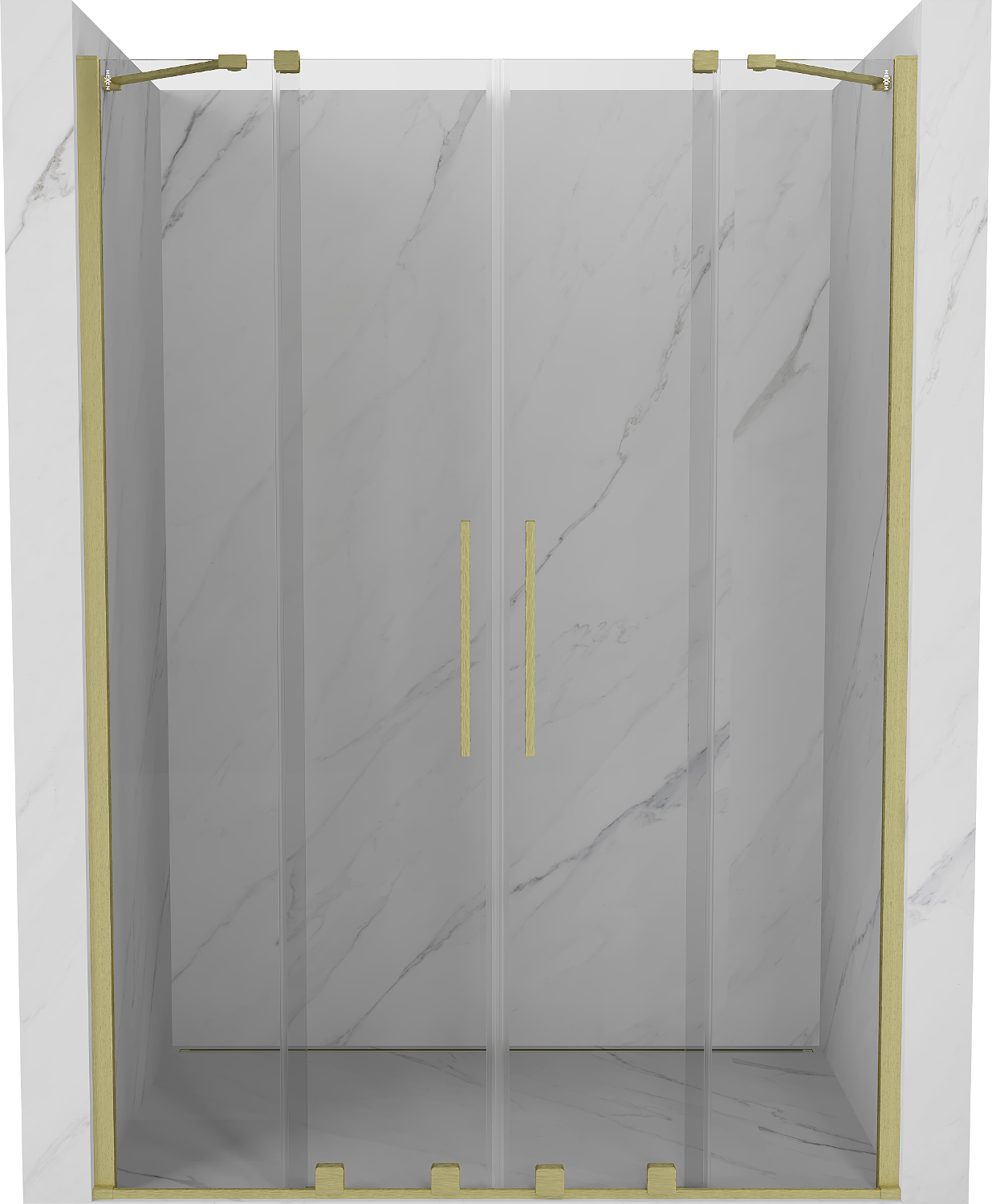 Mexen Velar Δίδυμες συρόμενες πόρτες ντους 140 cm, διαφανείς, χρυσές