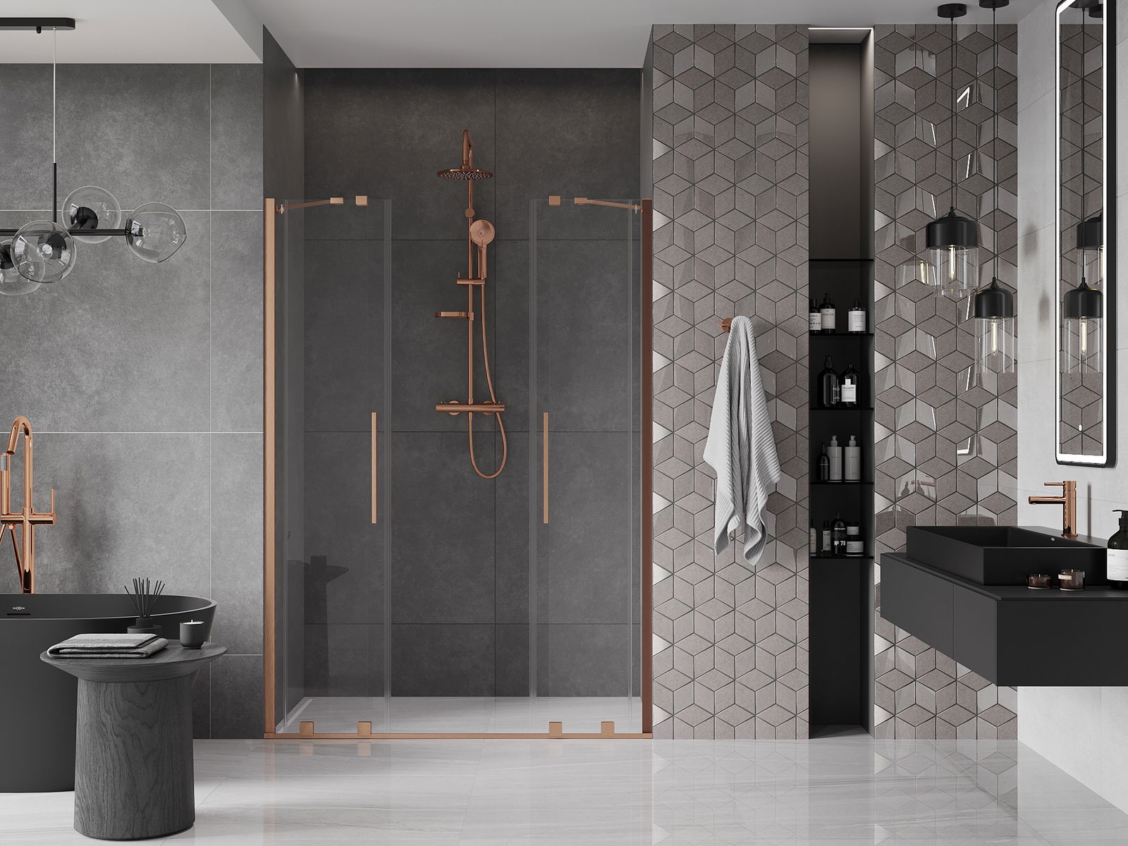 Χάρη στη χρήση ενός καθολικού συστήματος στήριξης, οι πόρτες ντους μπορούν να τοποθετηθούν είτε από τη δεξιά είτε από την αριστερή πλευρά, ανάλογα με τις ανάγκες. Έτσι μπορείτε να σχεδιάσετε με ευκολία ένα ντους προσαρμοσμένο στον χώρο του μπάνιου.