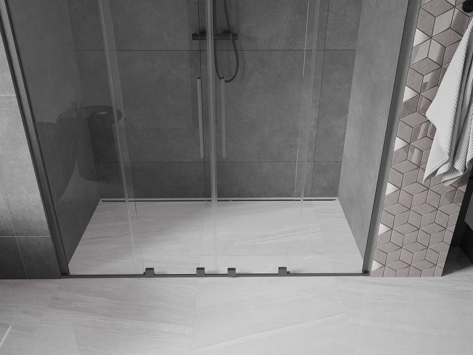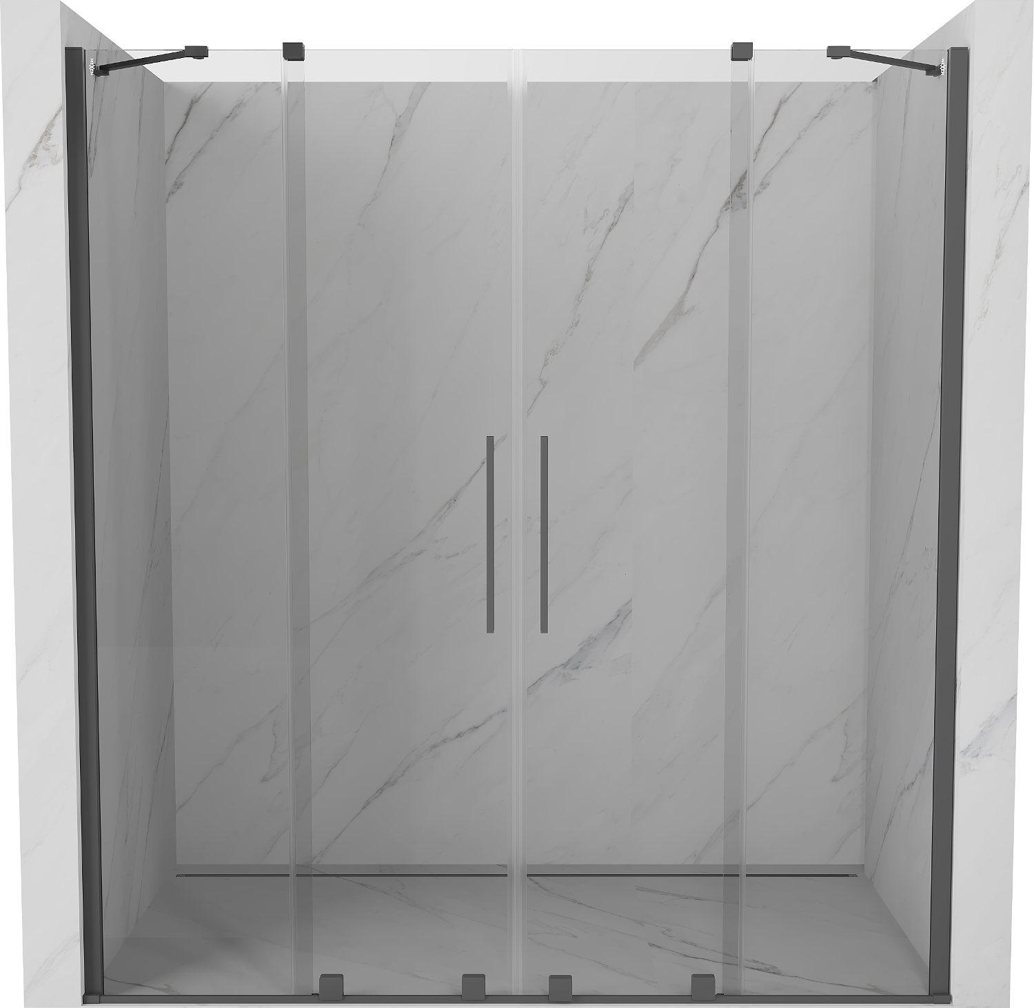 Mexen Velar Διπλό συρόμενες πόρτες ντους 200 cm, διαφανές, βουρτσισμένο γκρι