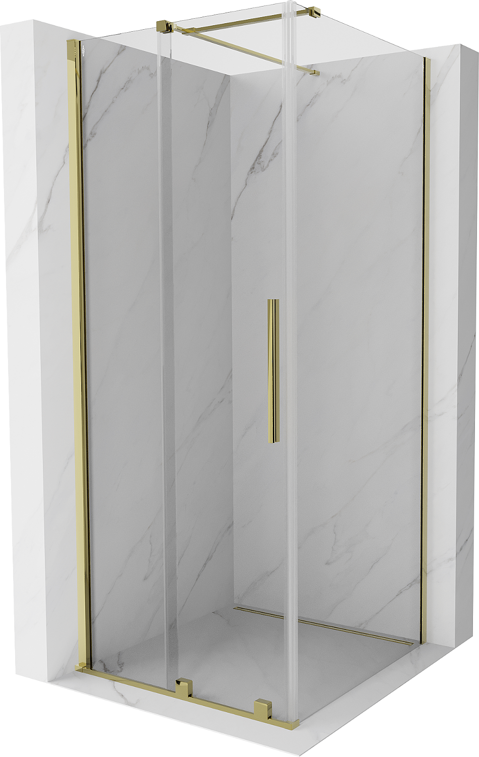 Mexen Velar συρόμενη καμπίνα ντους 100 x 100 cm, διάφανη, χρυσή - 871-100-100-01-50
