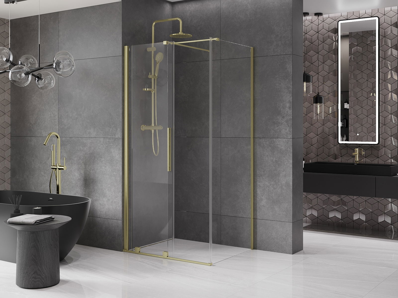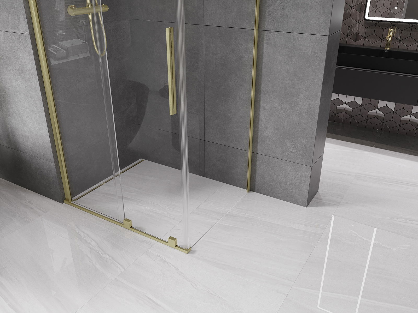 Mexen Velar συρόμενη καμπίνα ντους 90 x 80 cm, διαφανής, χρυσή ματ - 871-090-080-01-55
