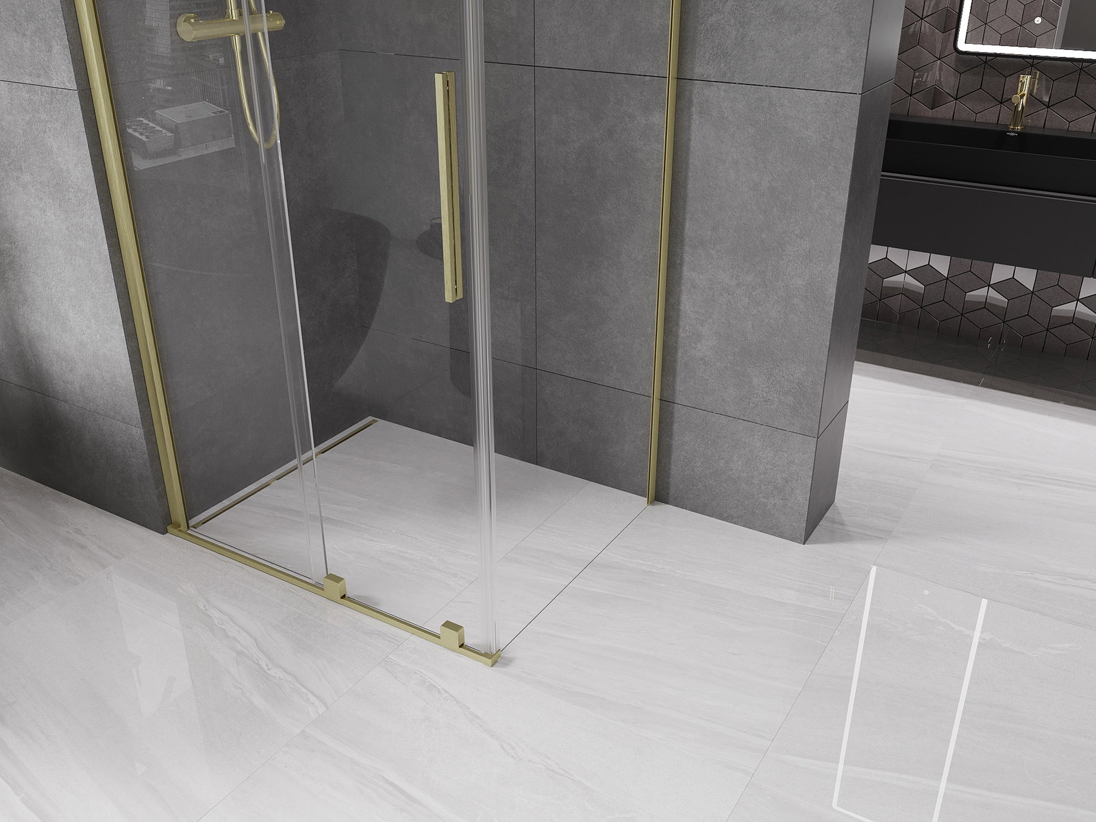Mexen Velar συρόμενη ντουζιέρα 110 x 75 cm, διάφανη, βουρτσισμένο χρυσό