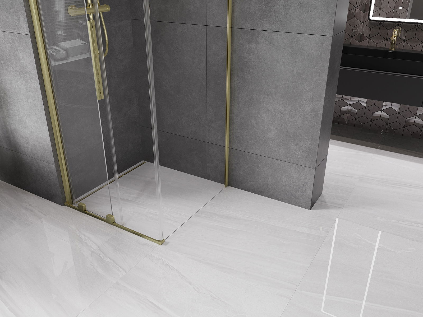 Mexen Velar καμπίνα ντους συρόμενη 110 x 110 cm, διάφανη, χρυσαφί βουρτσισμένη