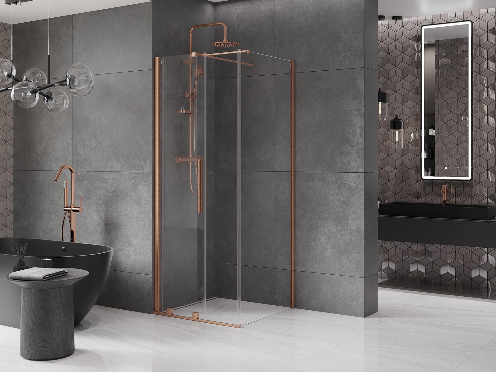 Mexen Velar συρόμενη καμπίνα ντους 100 x 100 cm, διάφανο, βουρτσισμένος χαλκός