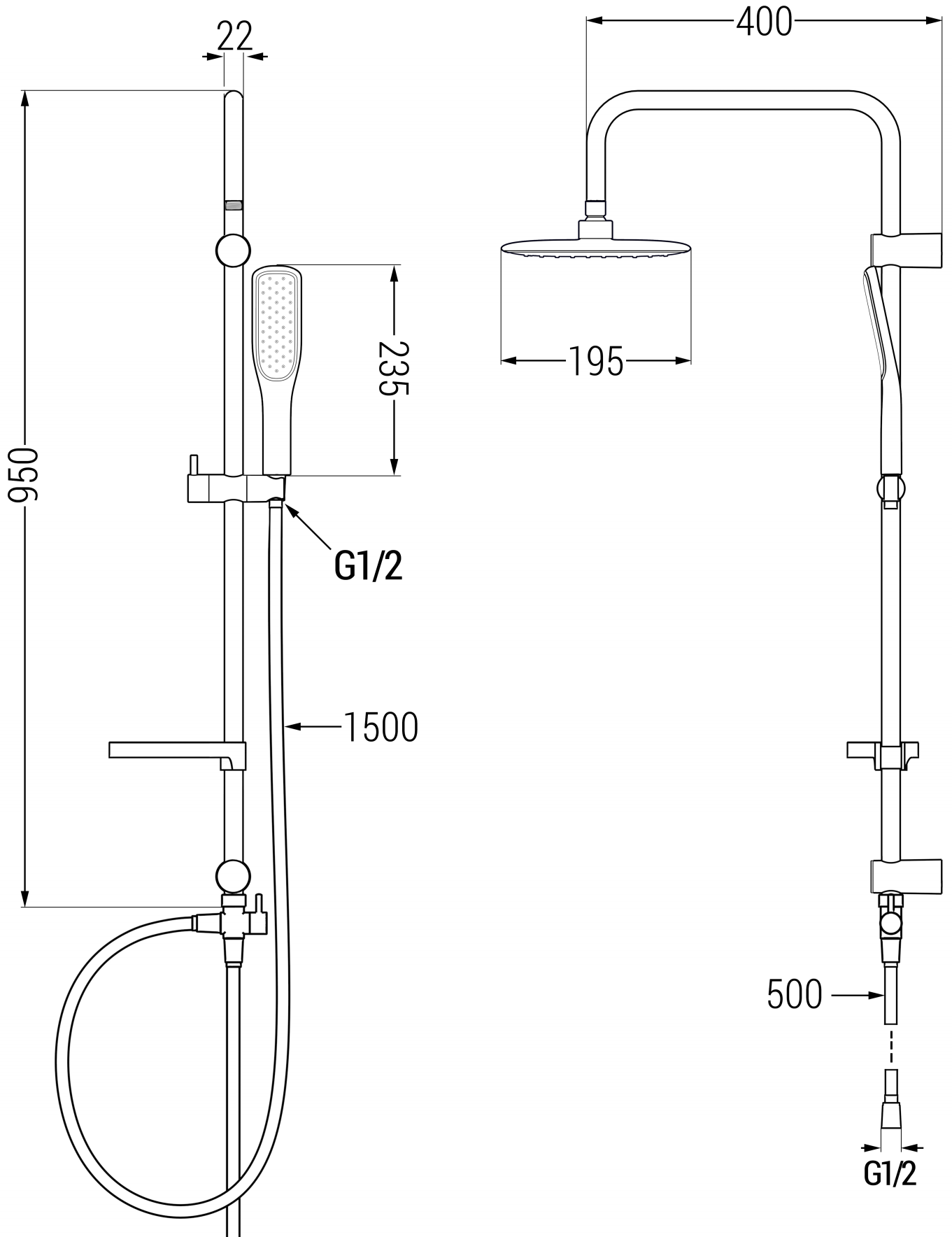 Μέγεθος κεφαλής ντους: 230 mm