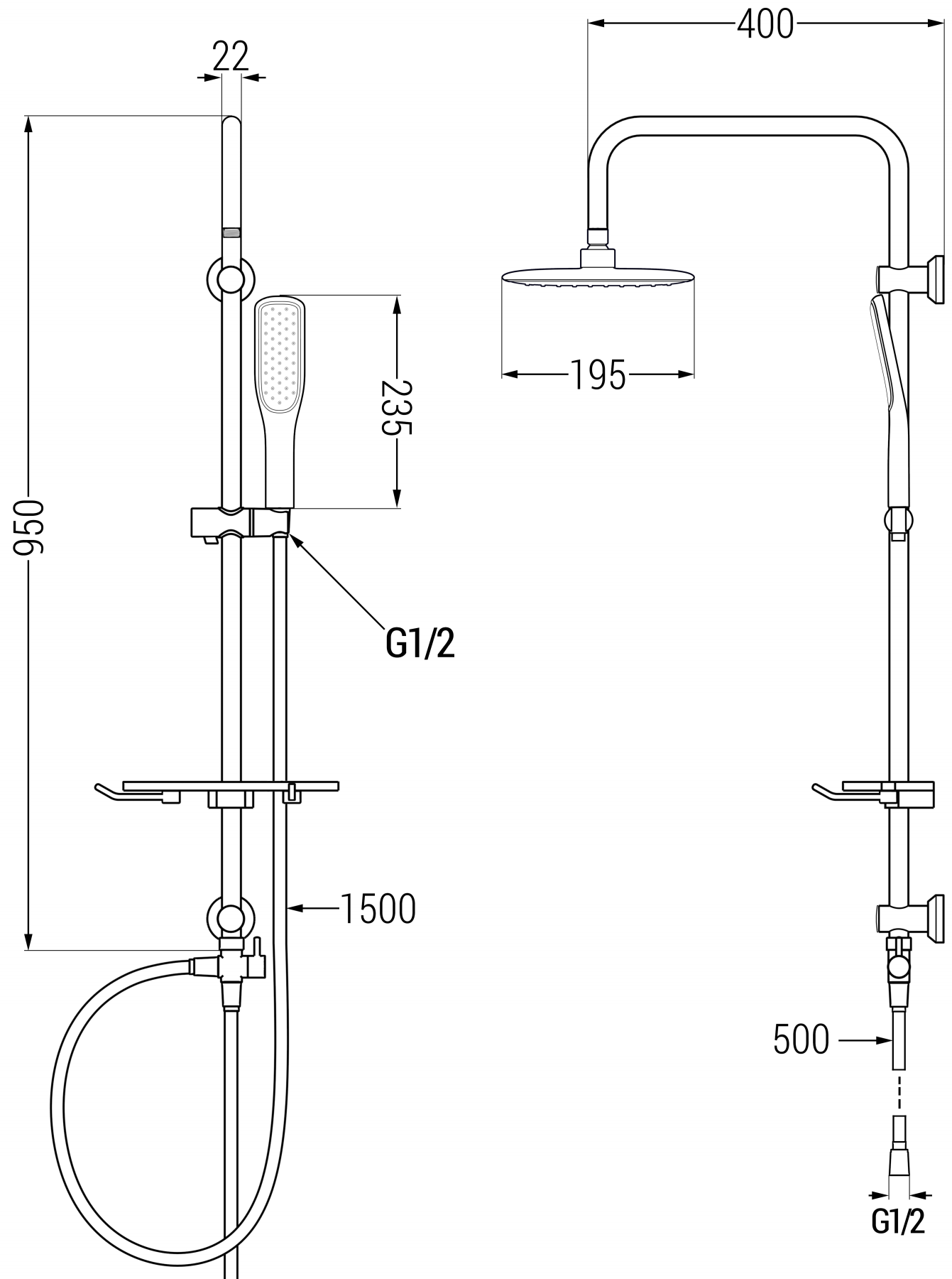 Μέγεθος κεφαλής ντους: 230 χιλιοστά