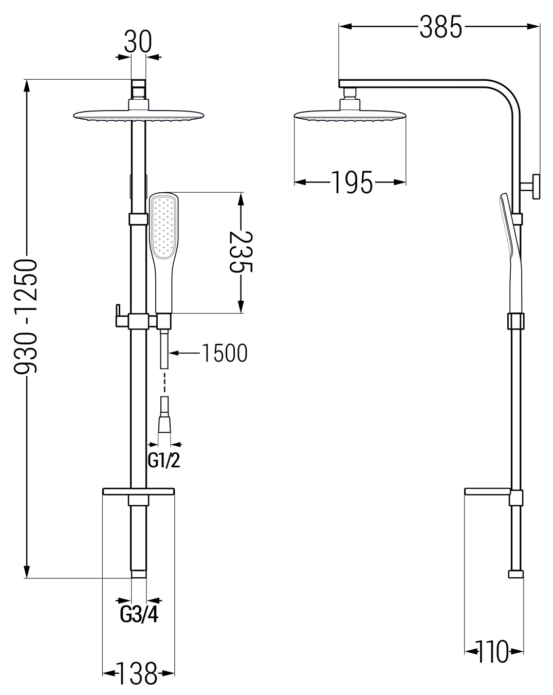 Μέγεθος κεφαλής ντους: 200x200 mm