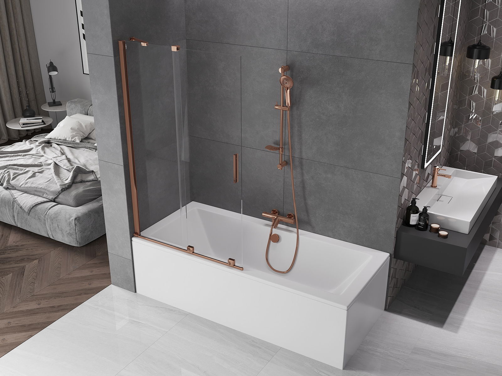 Mexen Velar διπλή συρόμενη οθόνη μπάνιου 100 x 150 cm, διαφανής, ροζ χρυσό