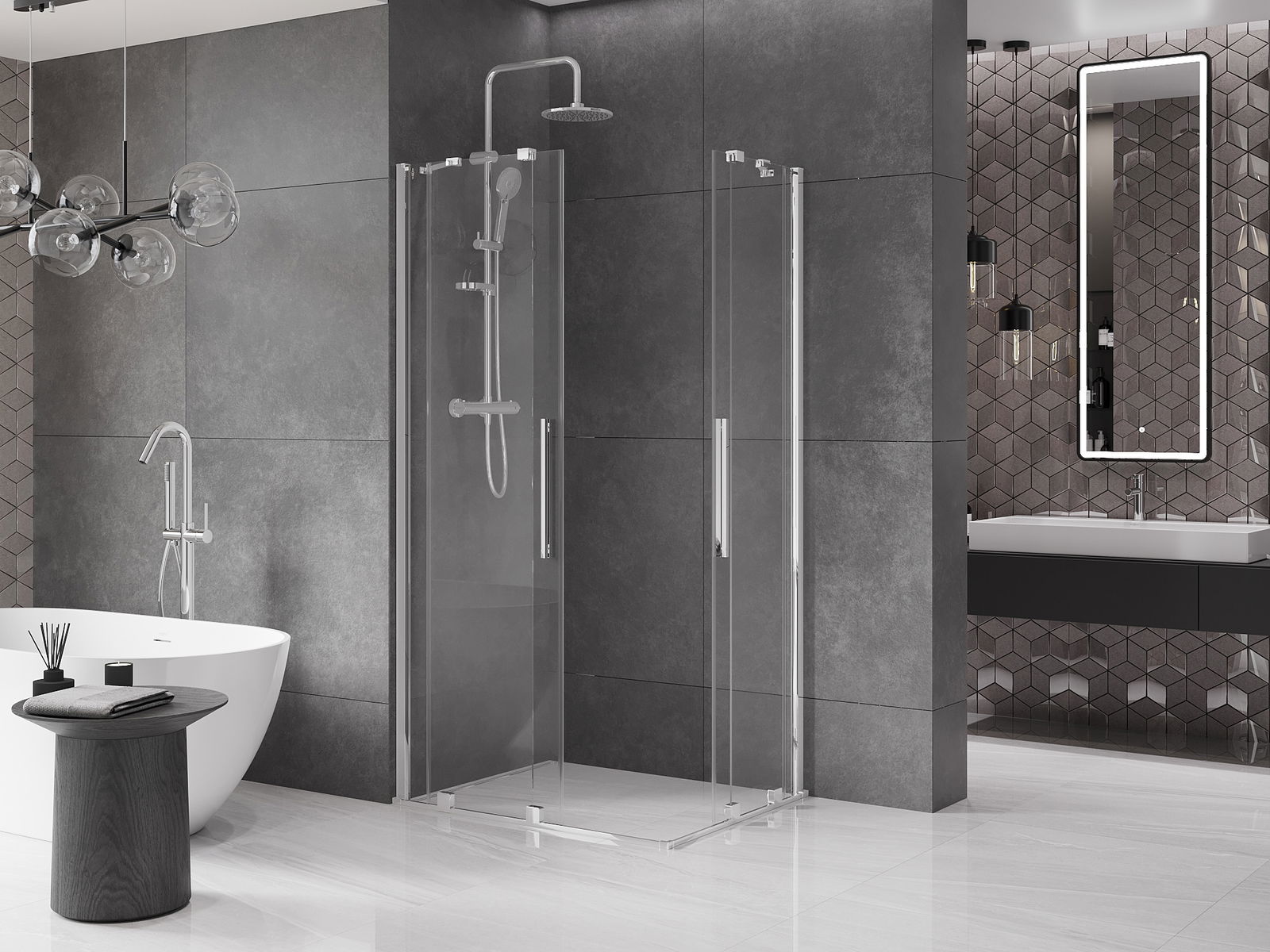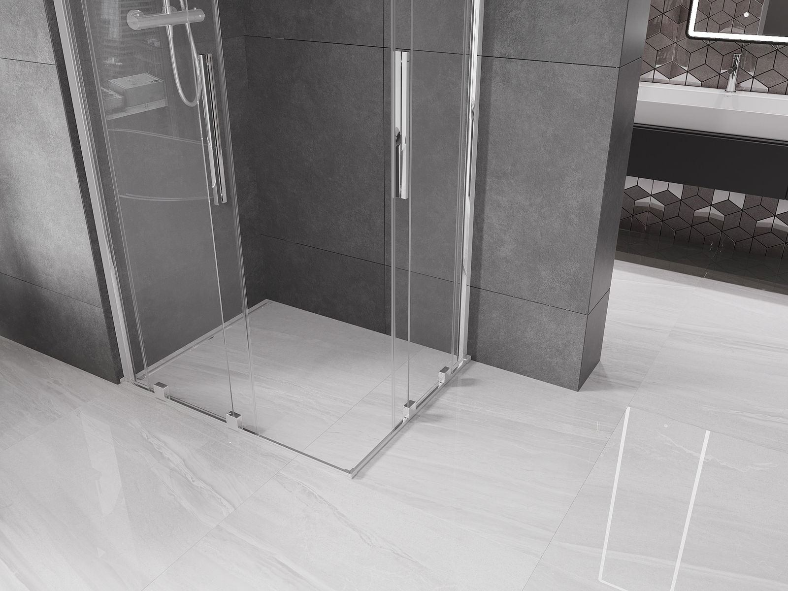 Mexen Velar Δίδυμη καμπίνα ντους συρόμενη 90 x 80 cm, διαφανής, χρώμιο