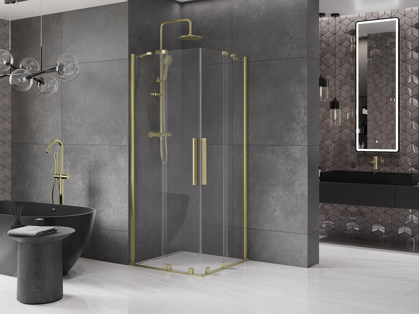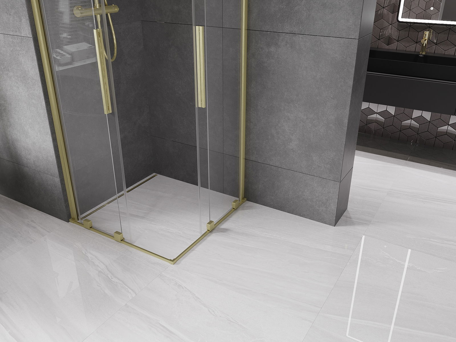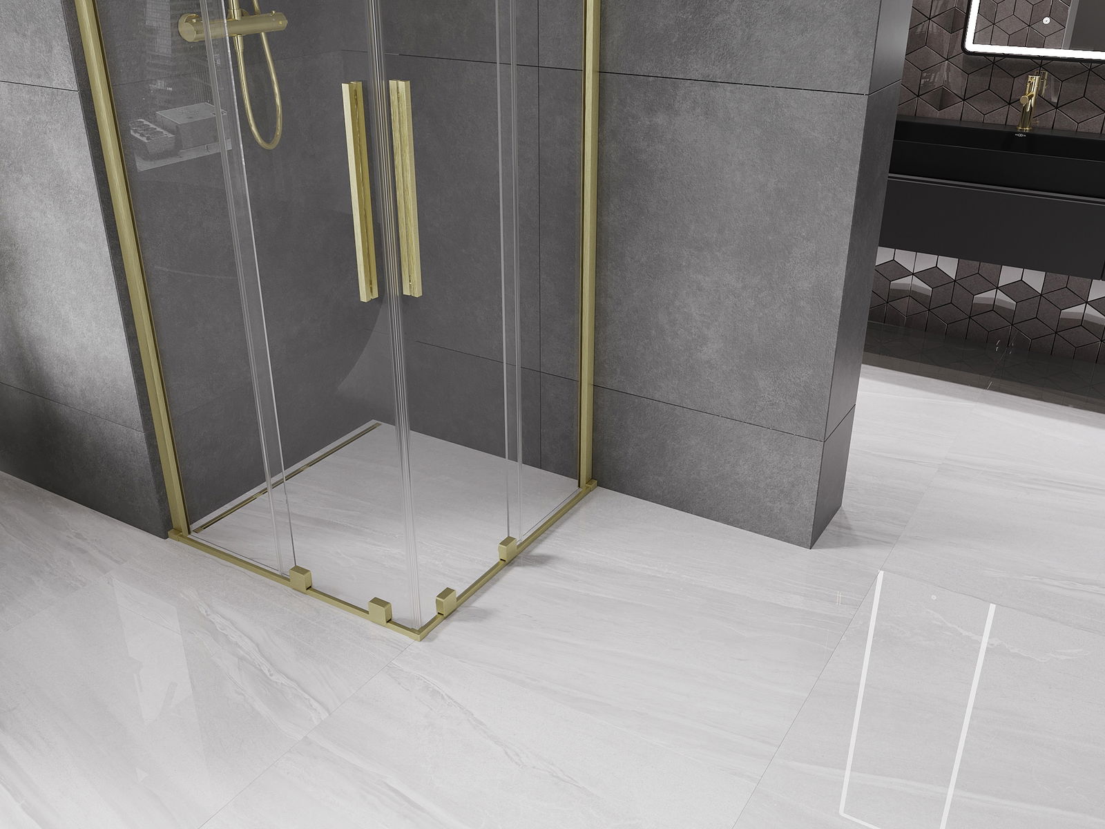 Mexen Velar Διπλή καμπίνα ντους συρόμενη 80 x 80 cm, διάφανη, χρυσή