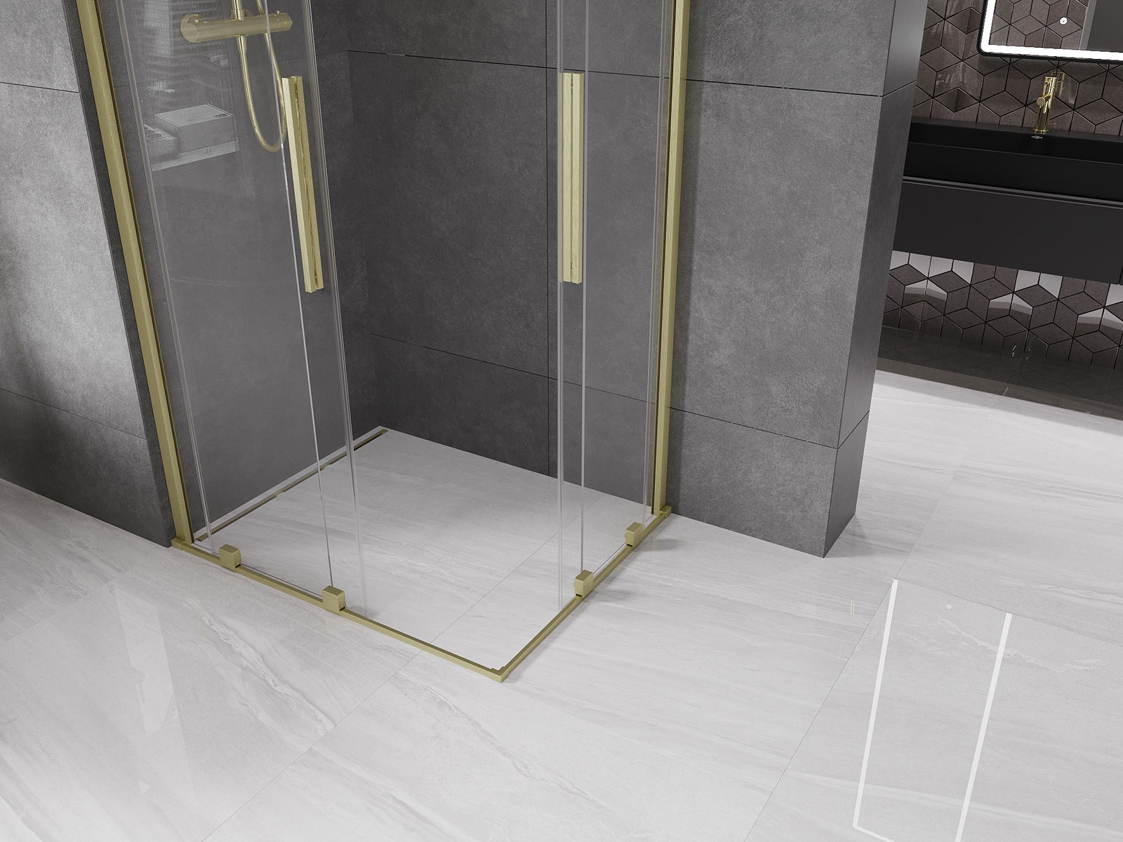 Mexen Velar Duo συρόμενη καμπίνα ντους 90 x 80 cm, διάφανη, χρυσό βουρτσισμένο