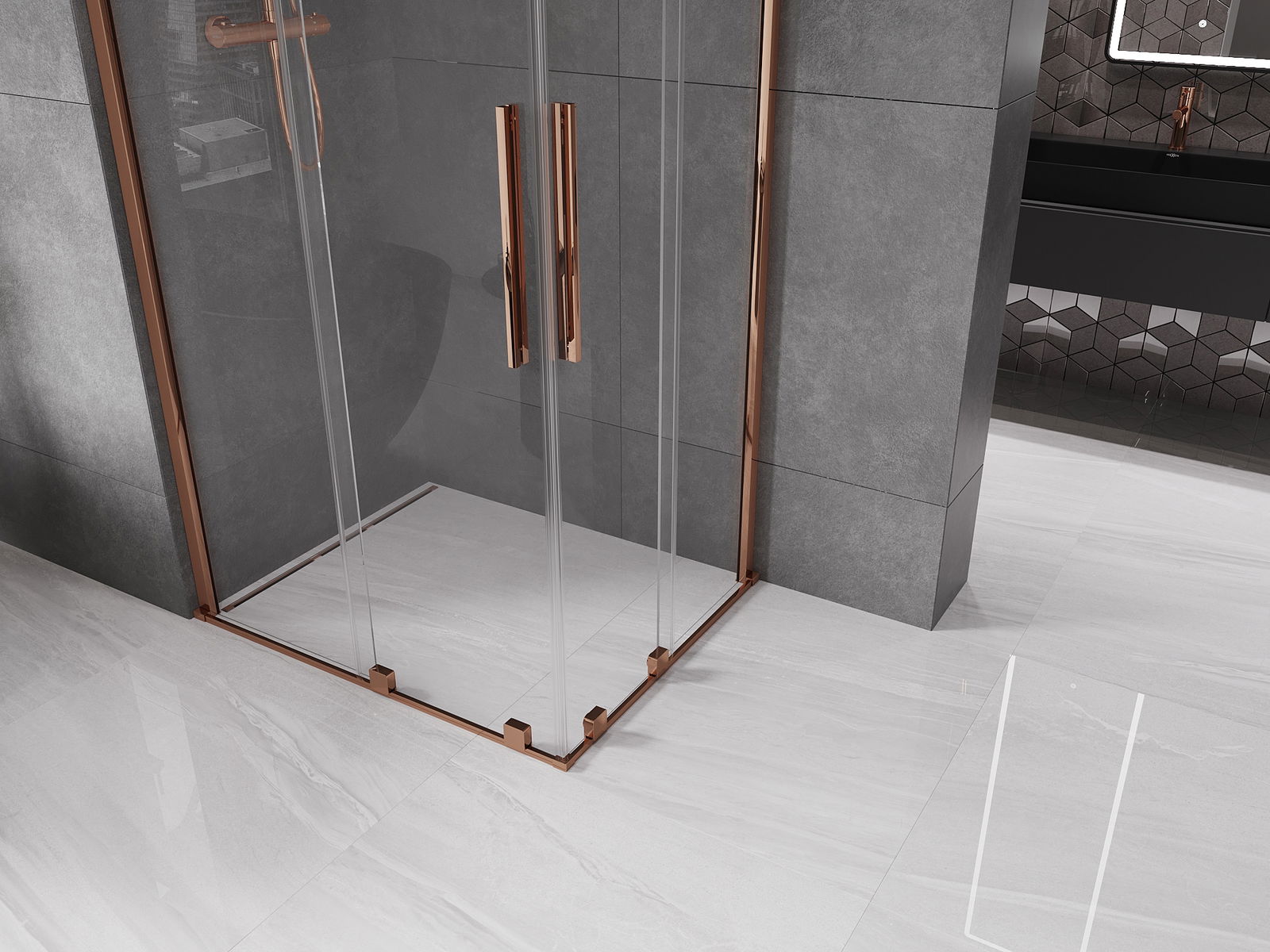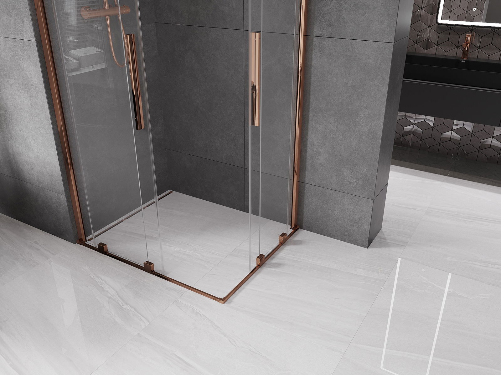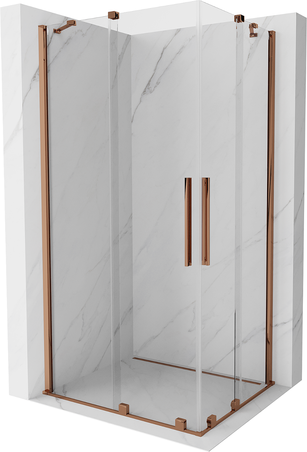 Mexen Velar Συρόμενη γωνιακή καμπίνα ντους Duo 90 x 80 cm, διάφανη, ροζ χρυσό