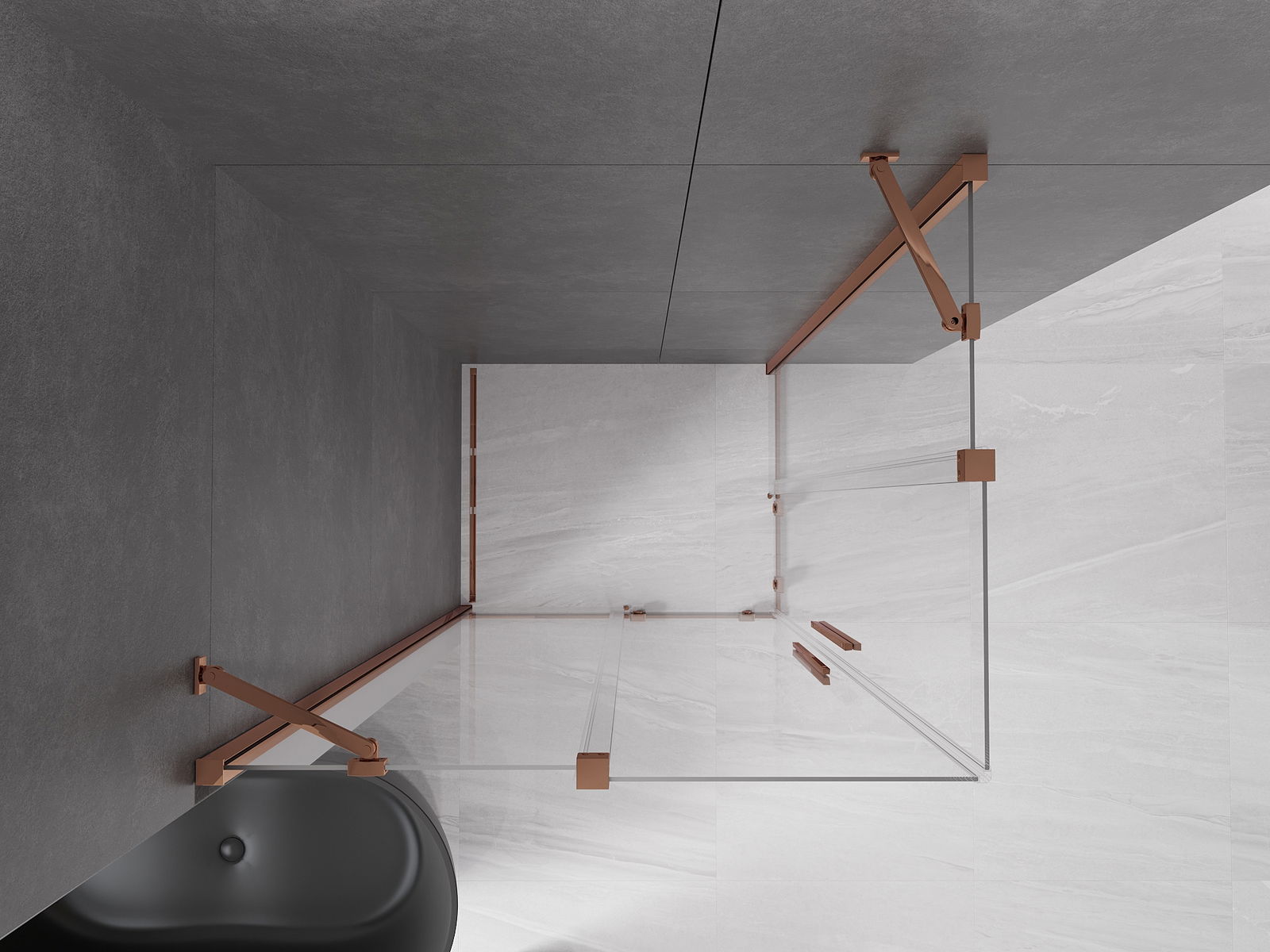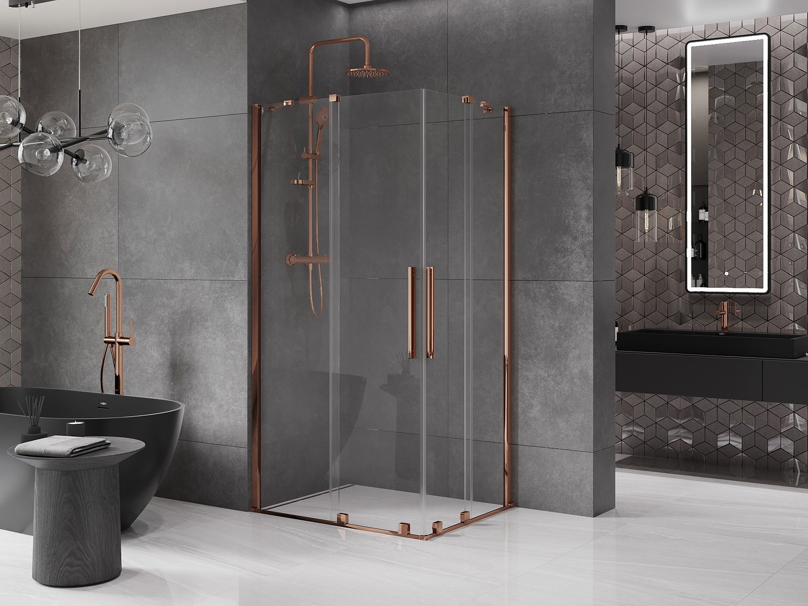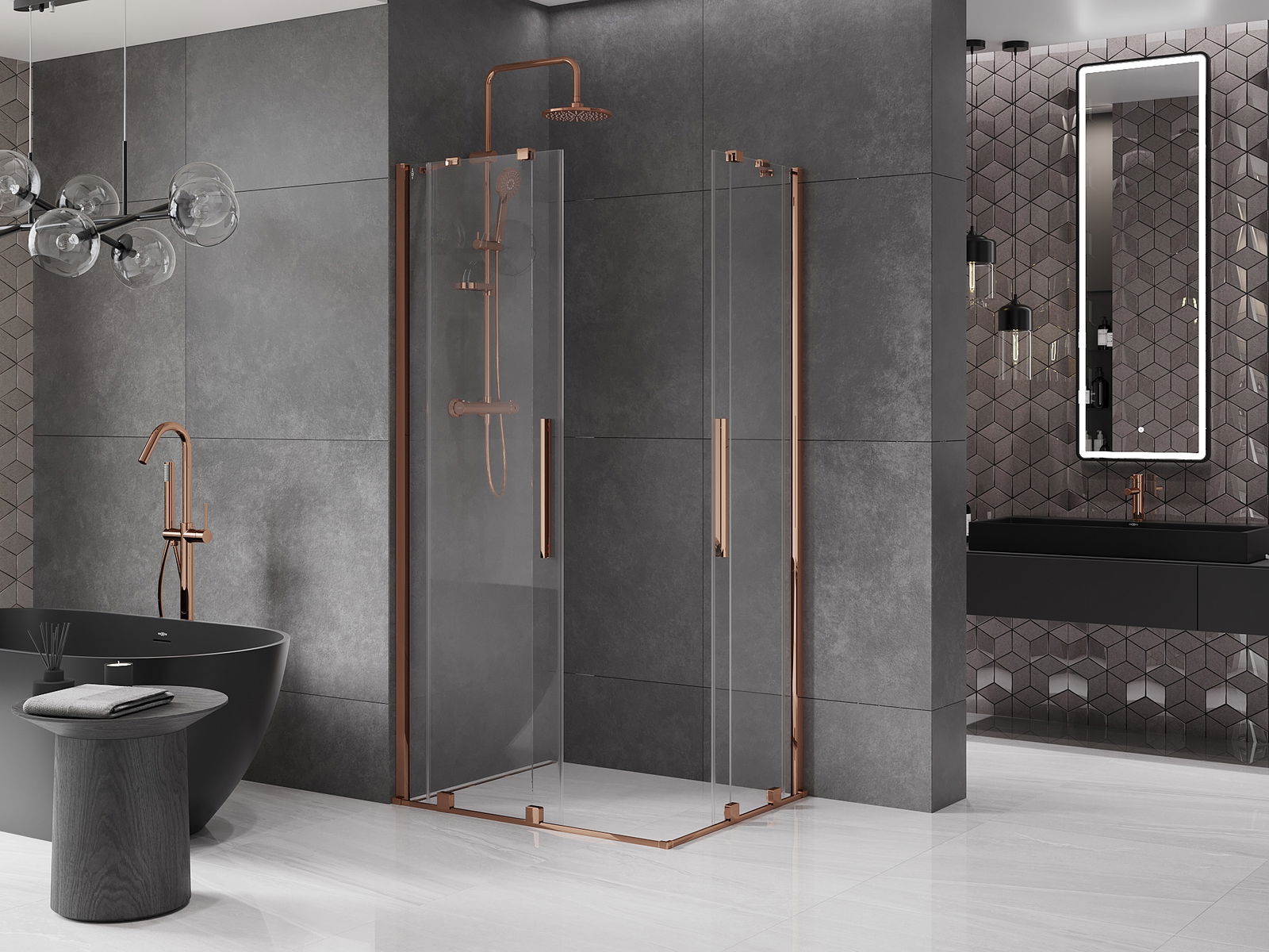 Mexen Velar Συρόμενη γωνιακή καμπίνα ντους Duo 90 x 80 cm, διάφανη, ροζ χρυσό