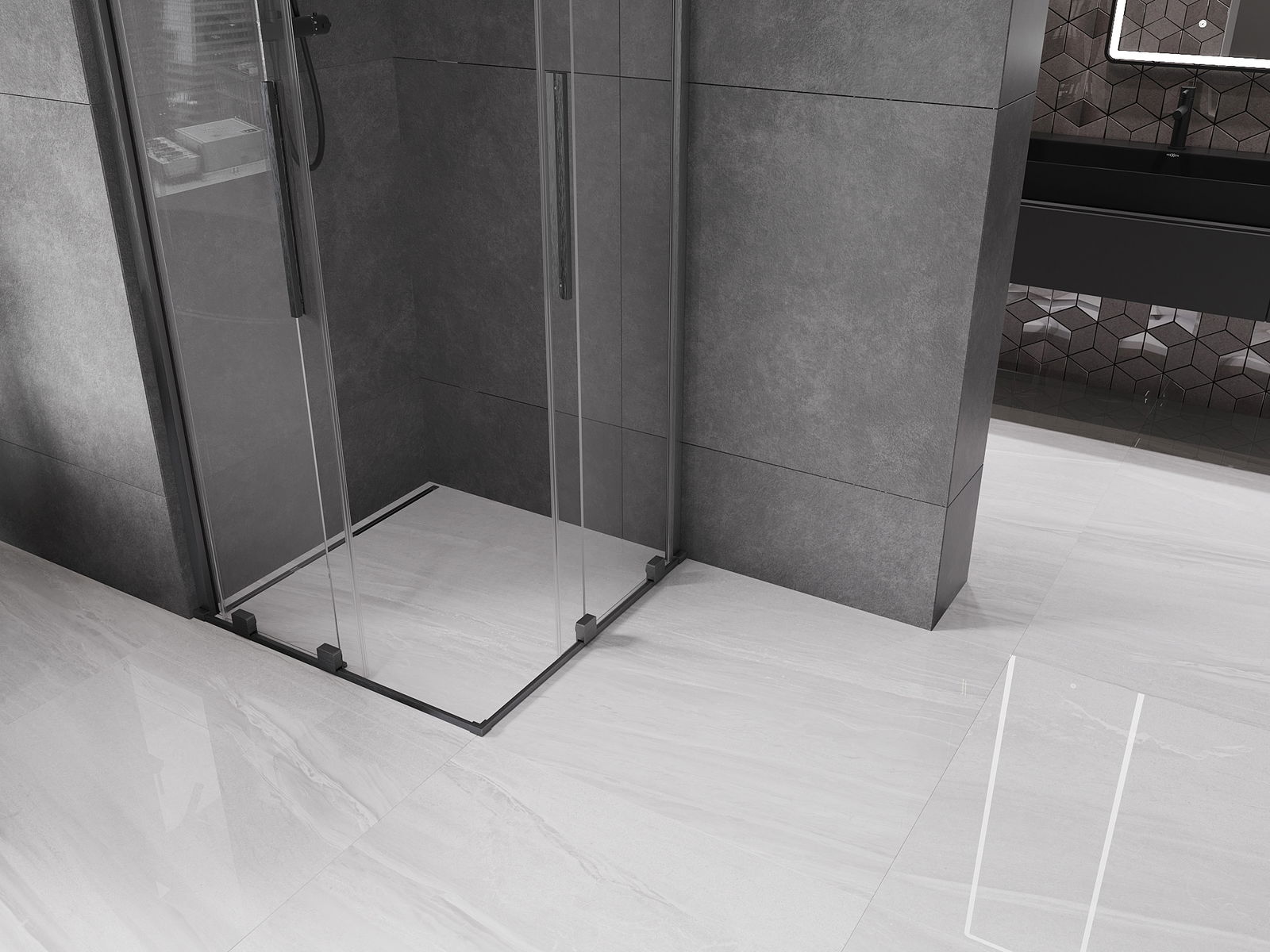 Χάρη στη χρήση ενός καθολικού συστήματος στήριξης, οι πόρτες ντους μπορούν να τοποθετηθούν είτε από τη δεξιά είτε από την αριστερή πλευρά, ανάλογα με τις ανάγκες. Έτσι μπορείτε να σχεδιάσετε με ευκολία ένα ντους προσαρμοσμένο στον χώρο του μπάνιου.