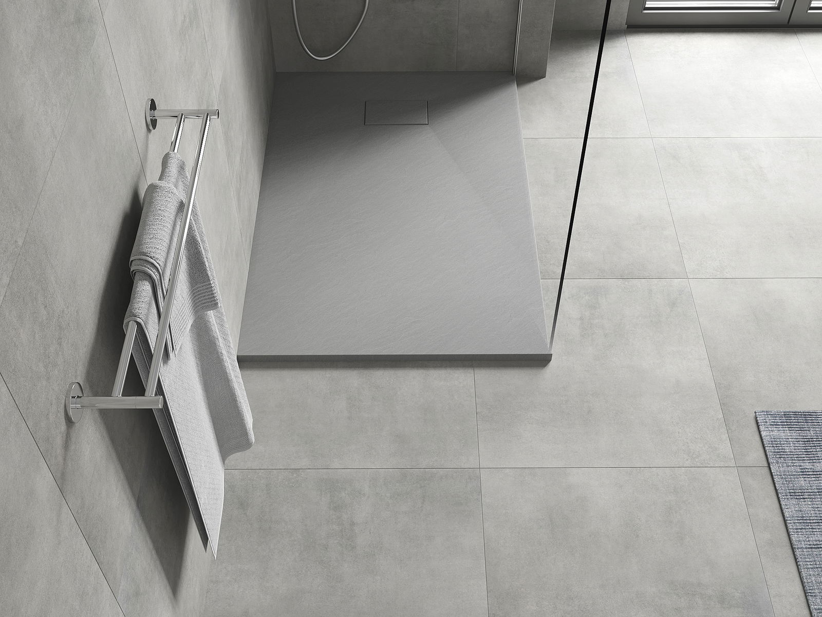 Η επιφάνεια της ντουζιέρας με τη δομή της θυμίζει πέτρα. Αποτελεί έναν εξαιρετικό συνδυασμό φυσικής εμφάνισης με σύγχρονη εσωτερική διαρρύθμιση. Προσθέτει χαρακτήρα, υπογραμμίζει την αισθητική και την κομψότητα της διακόσμησης του μπάνιου και εντυπωσιάζει με τη μορφή της.
