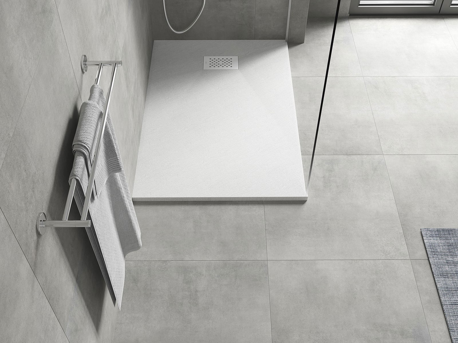 Η επιφάνεια της ντουζιέρας με τη δομή της θυμίζει πέτρα. Αποτελεί έναν εξαιρετικό συνδυασμό φυσικής εμφάνισης με σύγχρονη εσωτερική διαρρύθμιση. Προσθέτει χαρακτήρα, υπογραμμίζει την αισθητική και την κομψότητα της διακόσμησης του μπάνιου και εντυπωσιάζει με τη μορφή της.