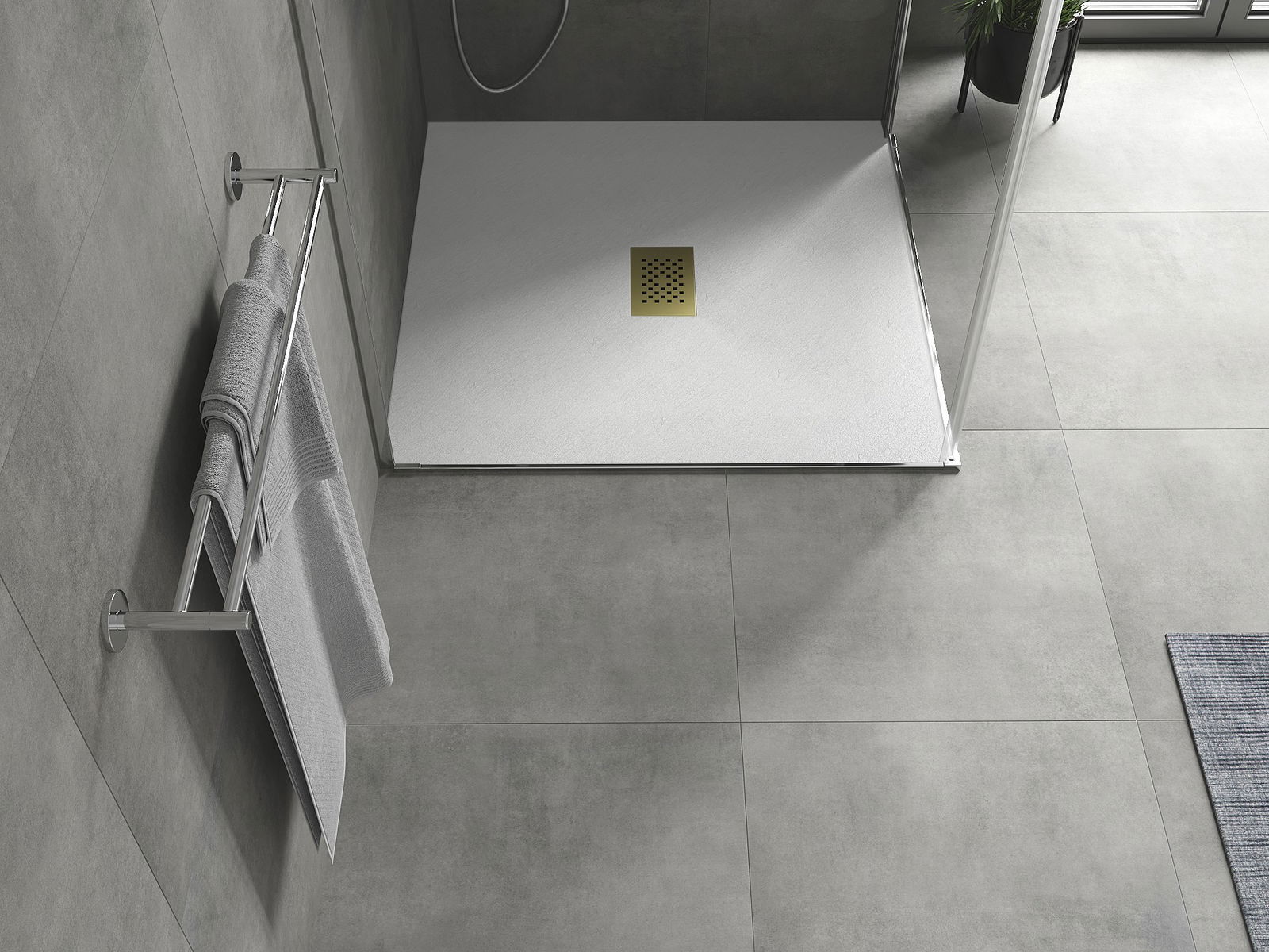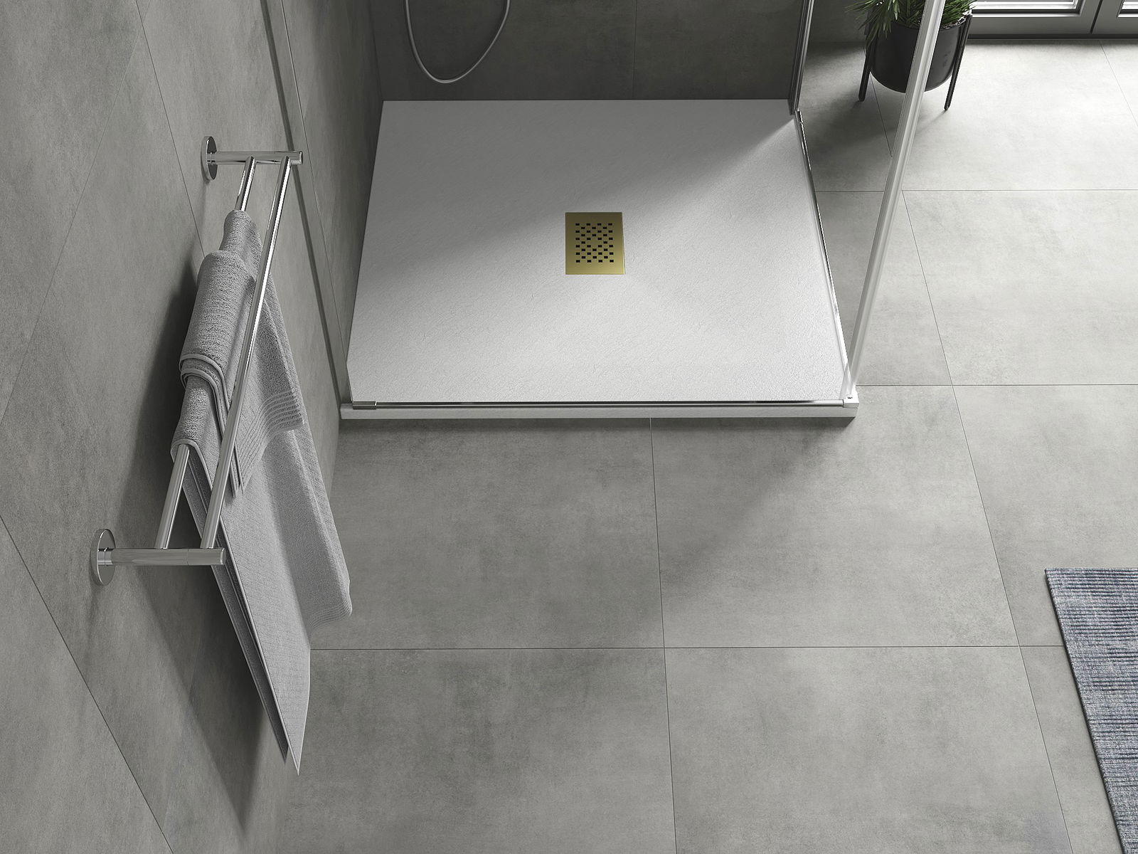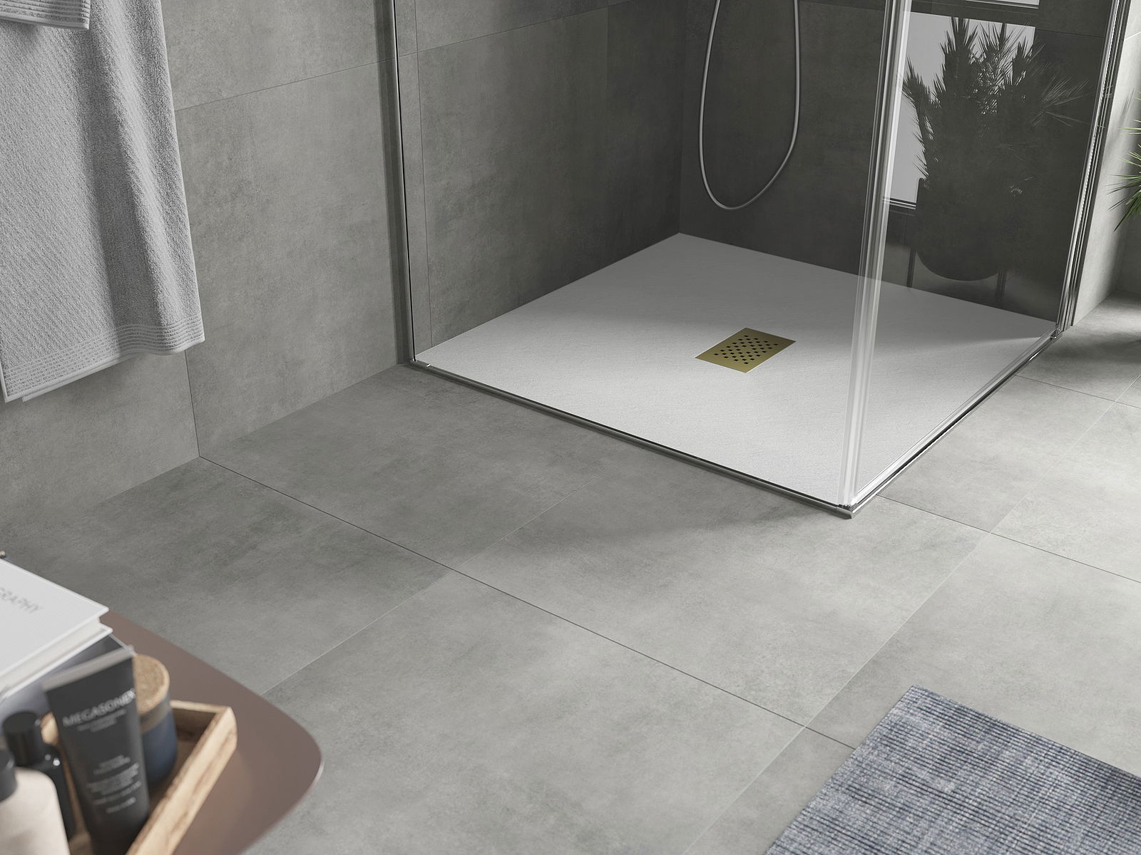 Η επιφάνεια της ντουζιέρας με τη δομή της θυμίζει πέτρα. Αποτελεί έναν εξαιρετικό συνδυασμό φυσικής εμφάνισης με σύγχρονη εσωτερική διαρρύθμιση. Προσθέτει χαρακτήρα, υπογραμμίζει την αισθητική και την κομψότητα της διακόσμησης του μπάνιου και εντυπωσιάζει με τη μορφή της.