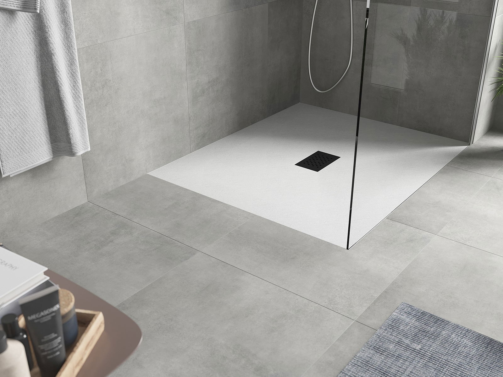 Η επιφάνεια της ντουζιέρας με τη δομή της θυμίζει πέτρα. Αποτελεί έναν εξαιρετικό συνδυασμό φυσικής εμφάνισης με σύγχρονη εσωτερική διαρρύθμιση. Προσθέτει χαρακτήρα, υπογραμμίζει την αισθητική και την κομψότητα της διακόσμησης του μπάνιου και εντυπωσιάζει με τη μορφή της.