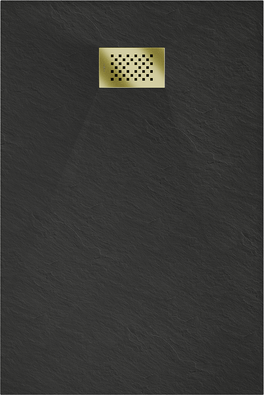 Mexen Hugo ορθογώνιος δίσκος ντους SMC 120 x 80 cm, μαύρος, καλυπτήρας χρυσός