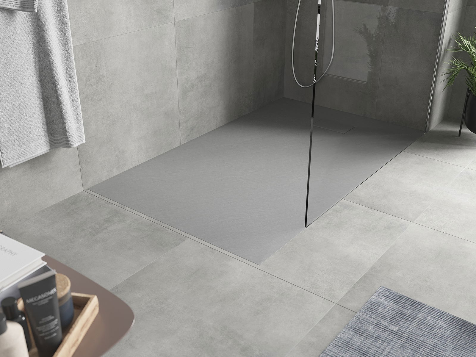 Η επιφάνεια της ντουζιέρας με τη δομή της θυμίζει πέτρα. Αποτελεί έναν εξαιρετικό συνδυασμό φυσικής εμφάνισης με σύγχρονη εσωτερική διαρρύθμιση. Προσθέτει χαρακτήρα, υπογραμμίζει την αισθητική και την κομψότητα της διακόσμησης του μπάνιου και εντυπωσιάζει με τη μορφή της.